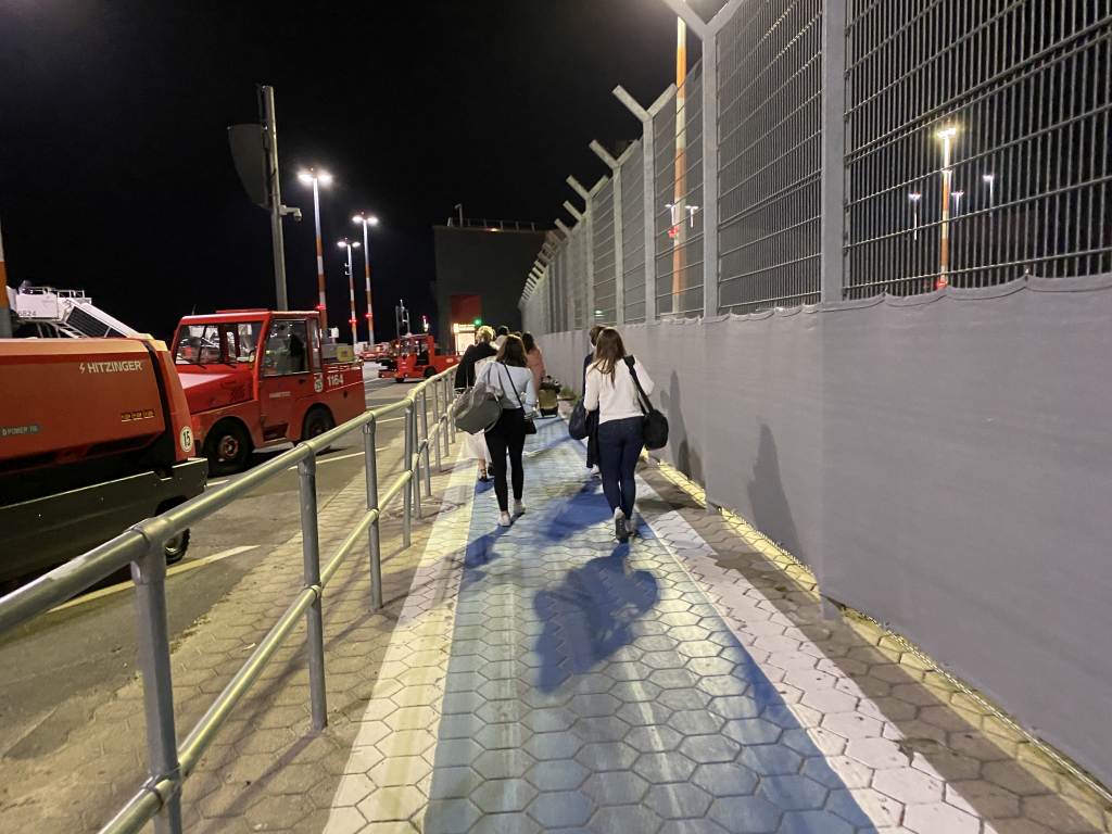 Der Flug dauert nicht lang. Doch als wir in Hamburg landeten, war es schon dunkel. Es gab jedoch noch eine Überraschung, denn plötzlich fühlte sich der Flug wie Ryanair an. Denn unser Airbus A320 parkte in der letzten Ecke des Flughafens. Doch während ich mich innerlich schon über den Bustransport zum Gate ärgerte, kamen zwar die Treppen, aber keine Busse. Stattdessen stiegen wir über die Treppen aus und liefen über das Rollfeld Richtung Terminal (was mir sympathischer war als der Bus).