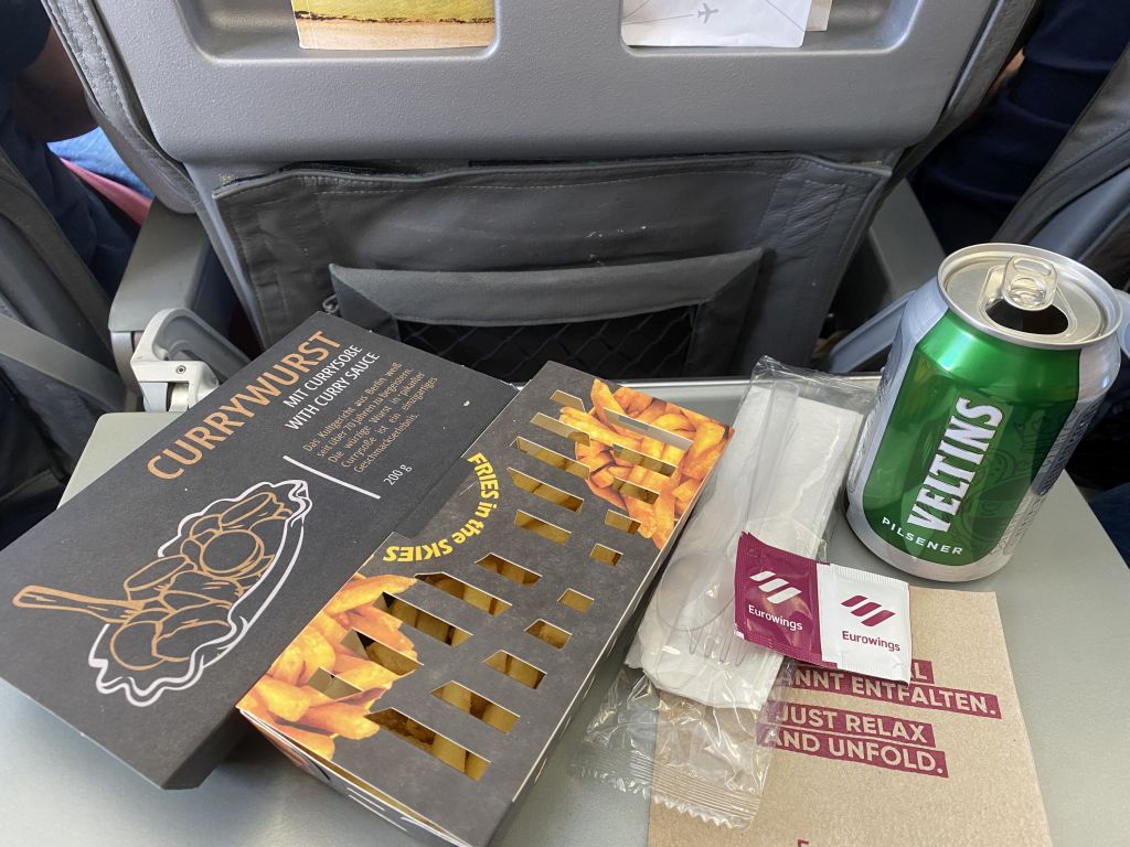 Da Eurowings auf ein „Buy on Board“-Konzept ohne jegliche kostenlose Verpflegung in der Economy Class setzt und die Crew durchaus motiviert war, gab es jederzeit die Möglichkeit noch einen Snack oder ein Getränk nachzubestellen.