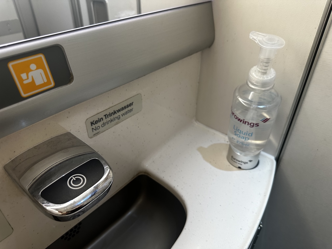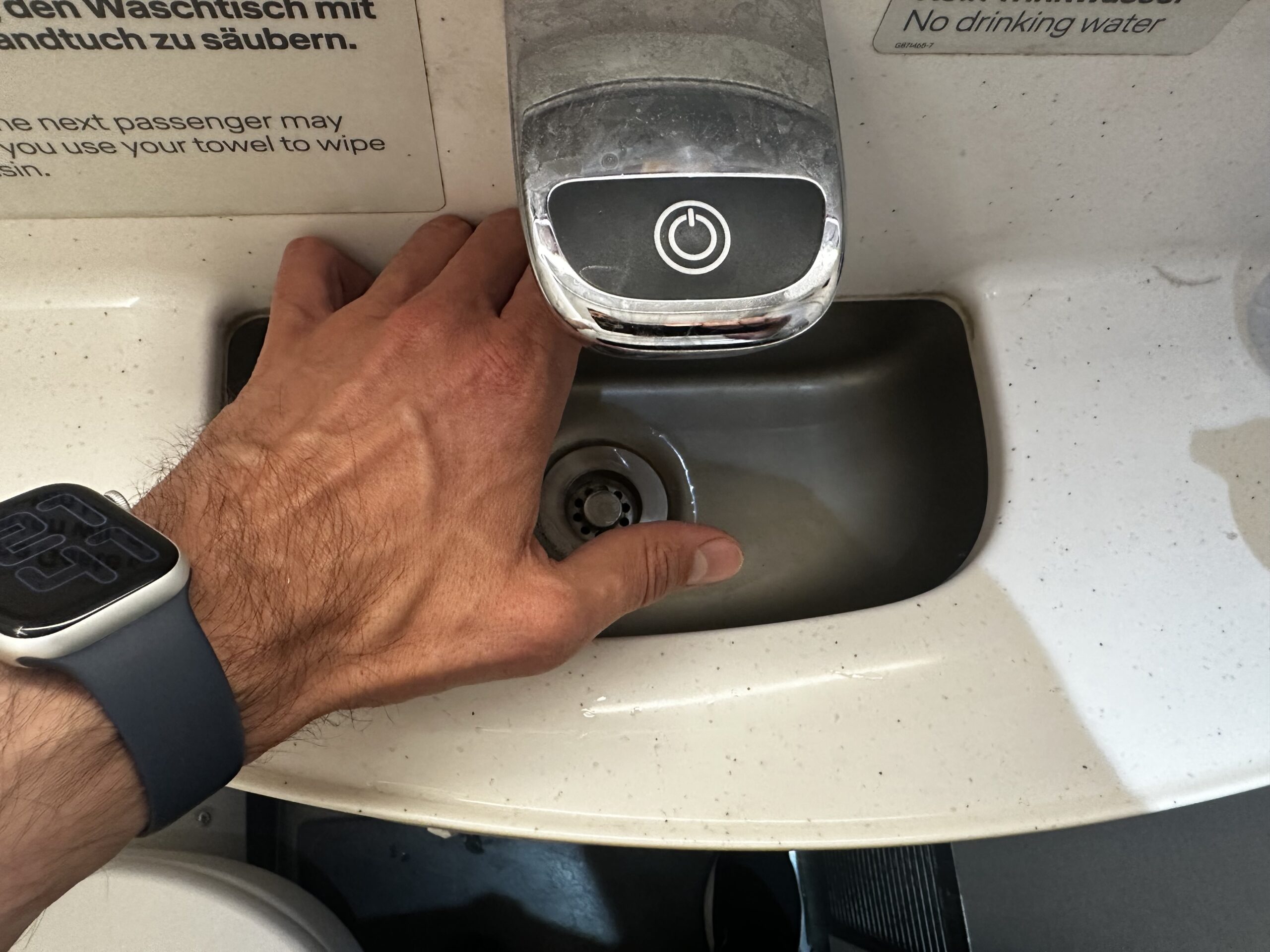 Händewaschen ist bei den Miniaturwaschbecken eine Herausforderung. Bei dem langen Flug war es dann auch irgendwann mit der Sauberkeit nicht mehr so wie wie man es gerne hätte.
