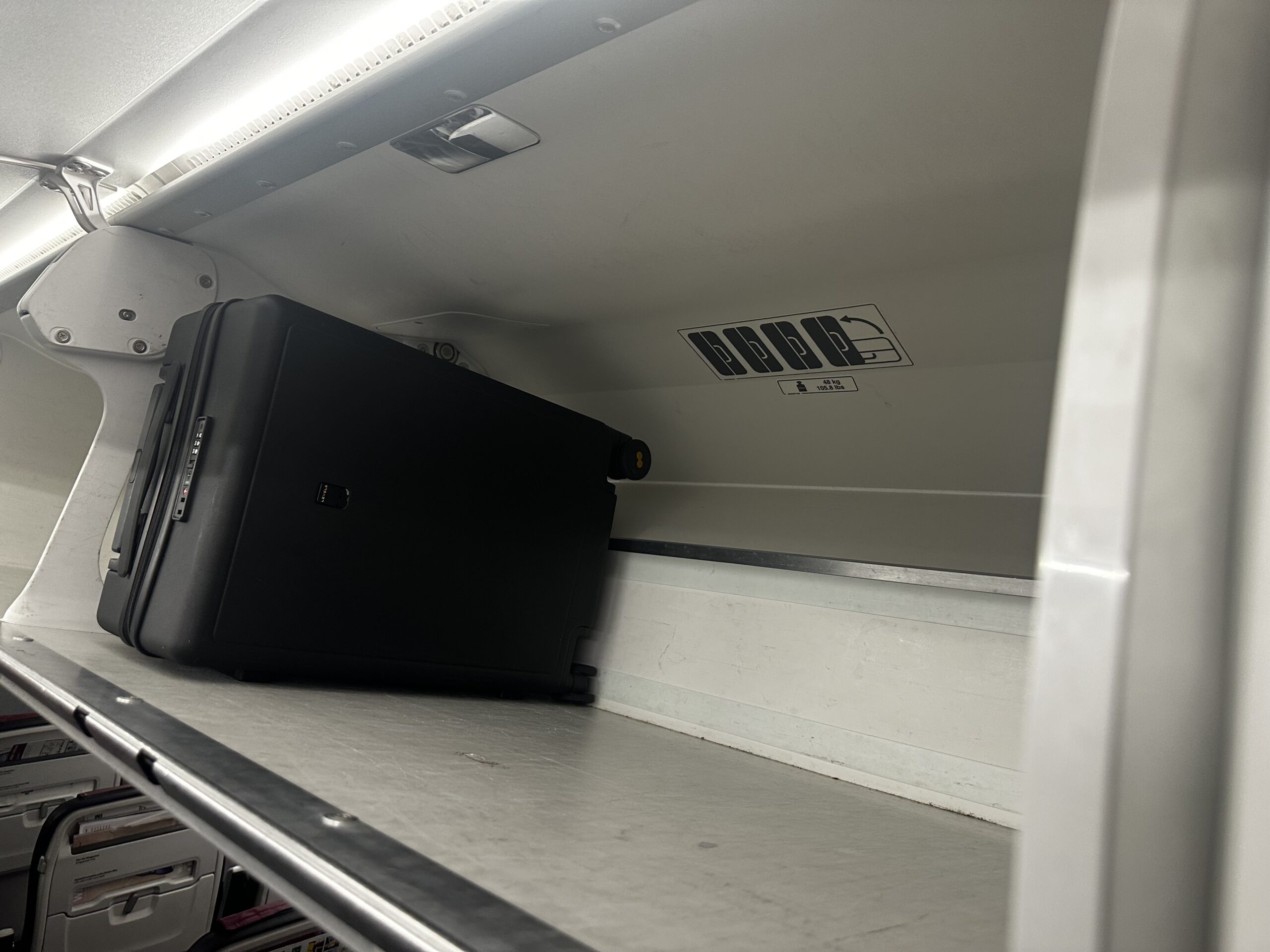 Immerhin waren die großen Gepäckfächer und das Moodlight installiert. Die vier Crewmitglieder haben auch noch ihr Bestes gegeben und waren viel in der Kabine unterwegs. Immerhin wird die Besatzung, die sonst keine Layover hat mit einer Übernachtung vor Ort belohnt.