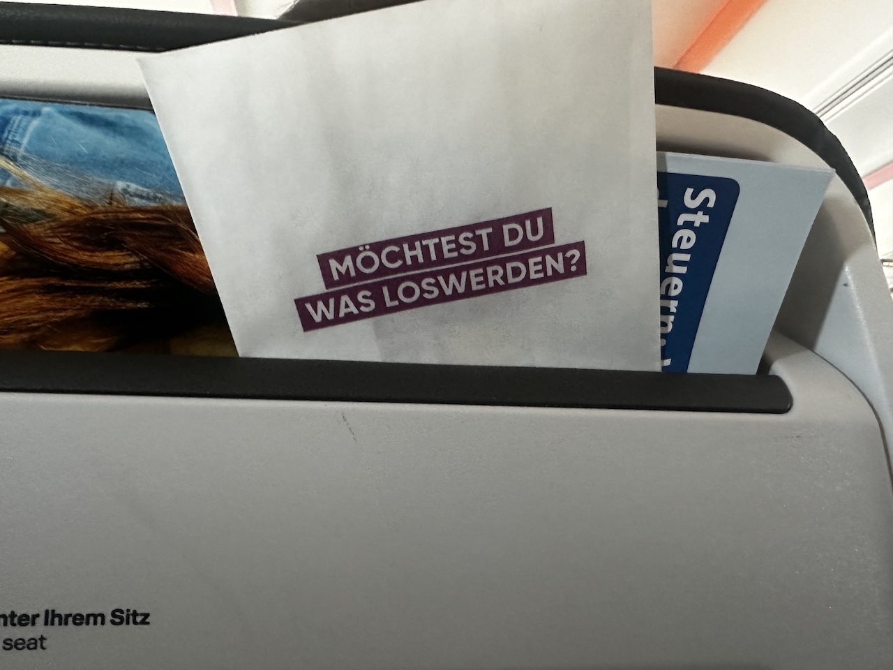 Gibt es hier auch nicht gegen Geld, es sei denn man bezeichnet die Socken für 14,90 Euro aus dem Bordshop als Amenity. Da auch keine Kissen und Decken angeboten werden, empfiehlt es sich ein warmes und/oder weiches Kleidungsstück einzupacken. Ich war zumindest sehr dankbar für einen Pullover, den ich zum Auspolstern des Sitzes genutzt habe.