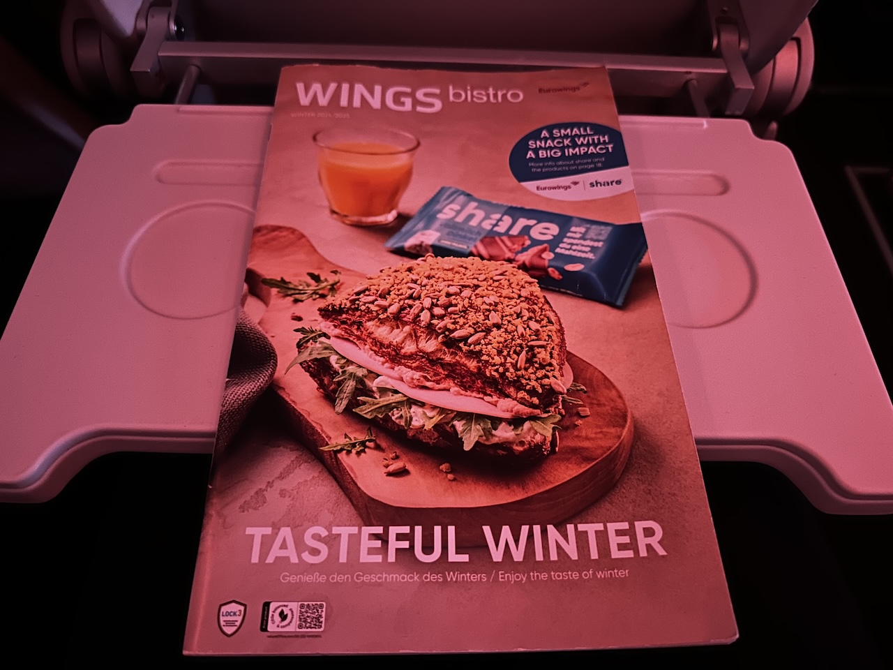 Auch auf dieser „kurzen Langstrecke“ bekommen die Eurowings Kunden das was sie sich aus dem „WINGSbistro“ leisten wollen. Bis auf eine kleine Flasche stilles Wasser bleiben alle Getränke und Snacks kostenpflichtig.