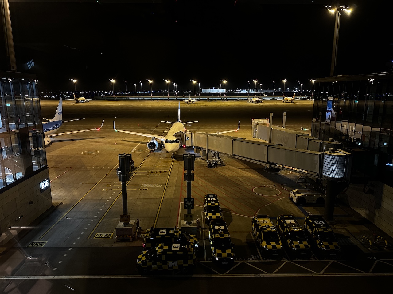 Wir landeten deutlich früher als geplant auf dem Mega Airport und rollten mit einem sicherlich gut geleerten Tank zum Gate. Das Gepäck war bereits auf dem Band, wobei wir in der Zwischenzeit noch mit einem Zug fahren und einreisen mussten.