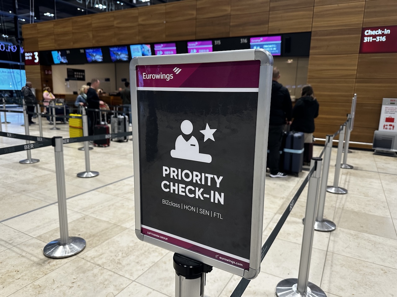 Die Schalter von Eurowings waren nur leicht frequentiert, insgesamt waren fünf Decks offen, davon einer für die BIZ Class und Statuskunden.