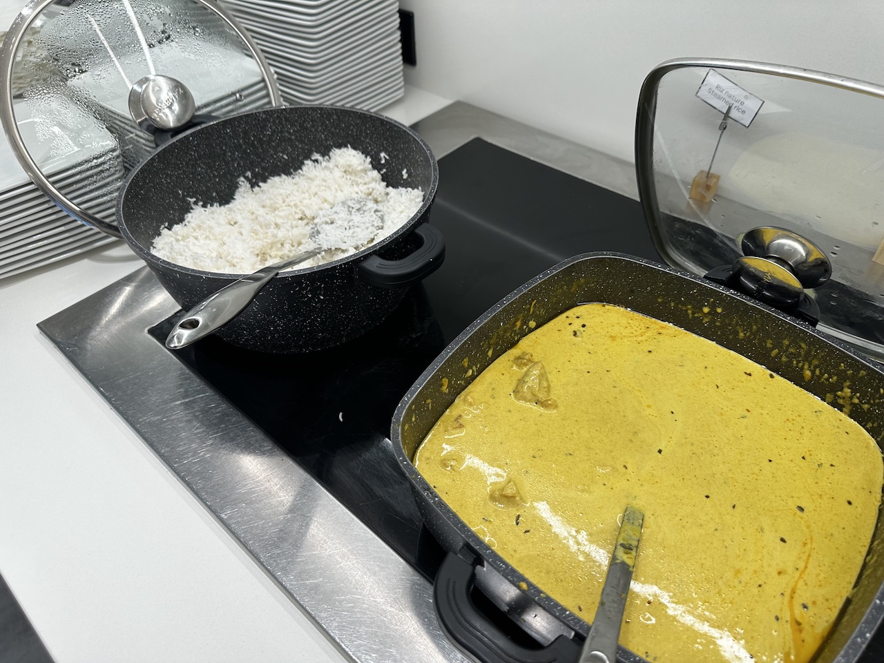 Im Angebot standen Curry mit Reis und Hühnchen mit Gemüse und Ofenkartoffeln.