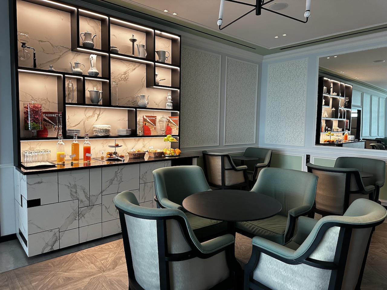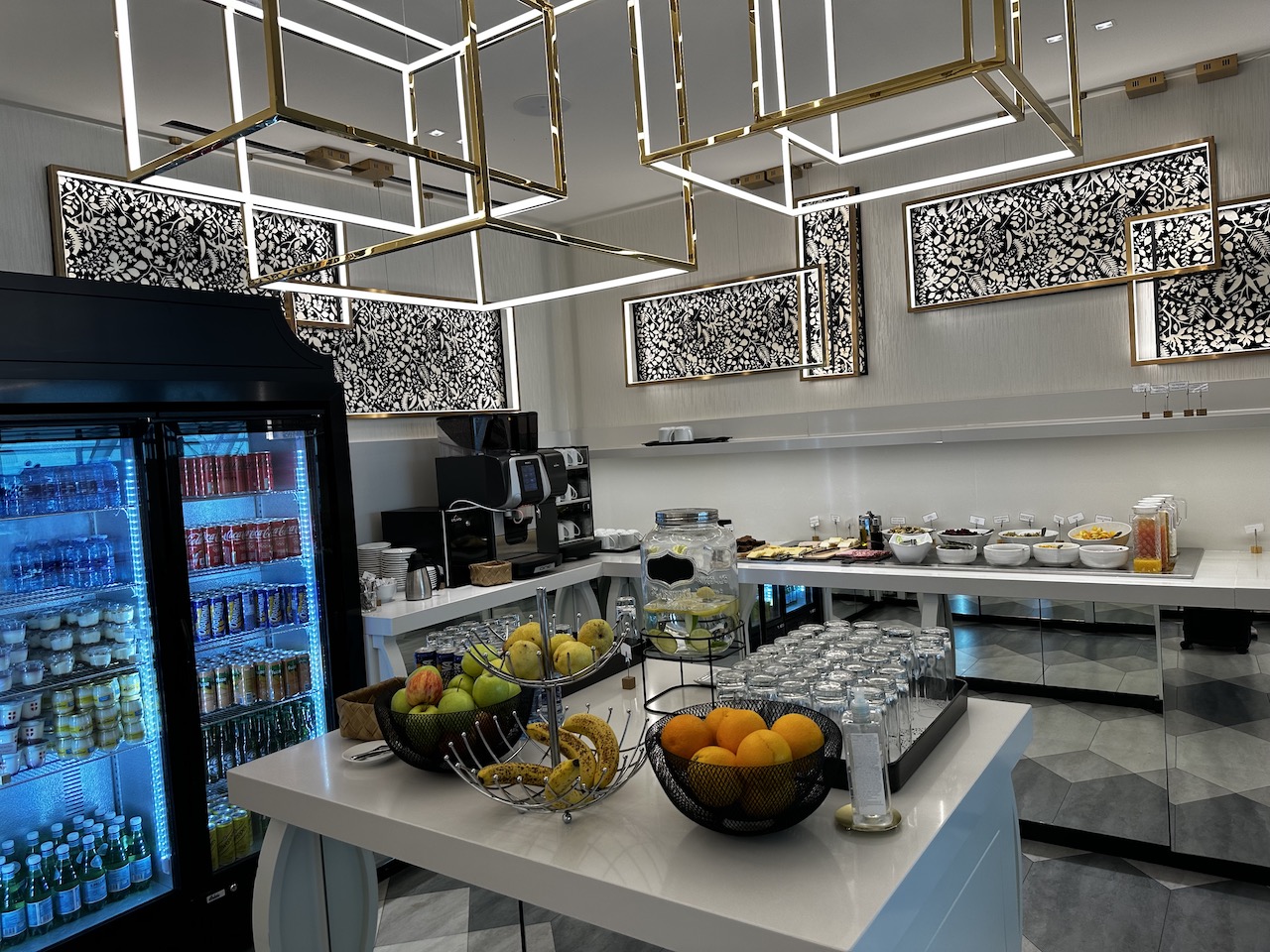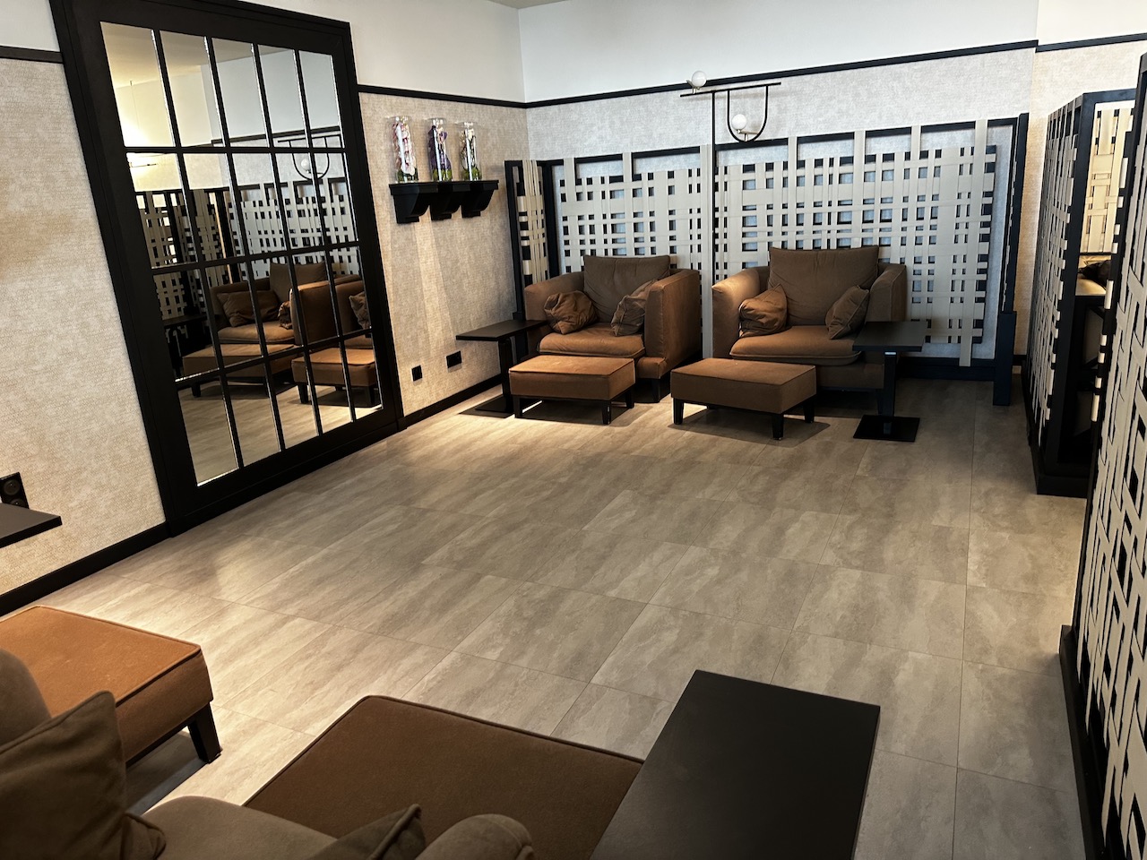 Dies Lounge wurde Mitte 2022 in Betrieb in der heutigen Form eröffnet, das Interieur erinnert stellenweise an eine Brasserie. In einem ersten Raum nach der Rezeption stehen ein paar Tische, sowie ein sehr kleines Buffet mit Säften und Snacks.