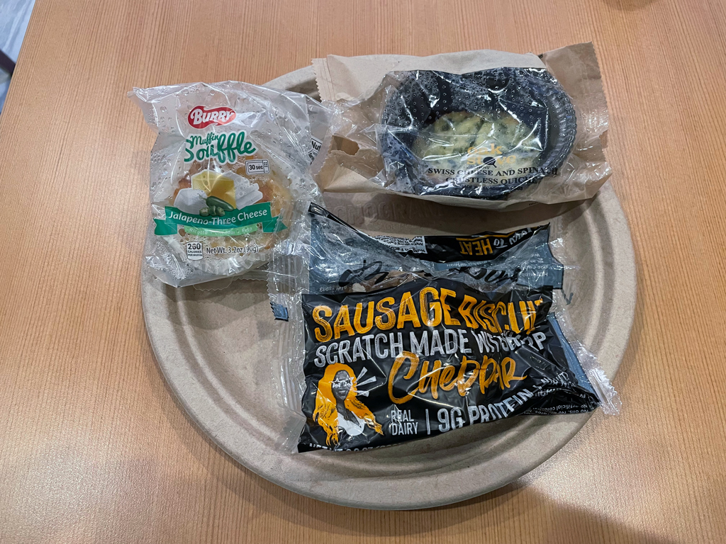 Das Frühstück im Fairfield Inn ist für alle Gäste kostenlos. Richtig ausgewogen ist die Ernährung dabei nicht und ich habe noch nie so viel Plastikmüll mit einer einzigen Mahlzeit hinterlassen. Das war unglaublich. Die drei warmen Speisen, die ich gegessen habe, schmeckten immerhin alle unterschiedlich und waren genießbar. Mehr habe ich nicht erwartet und auch nicht bekommen. Keine davon hat sich für eine zweite Portion aufgedrängt.