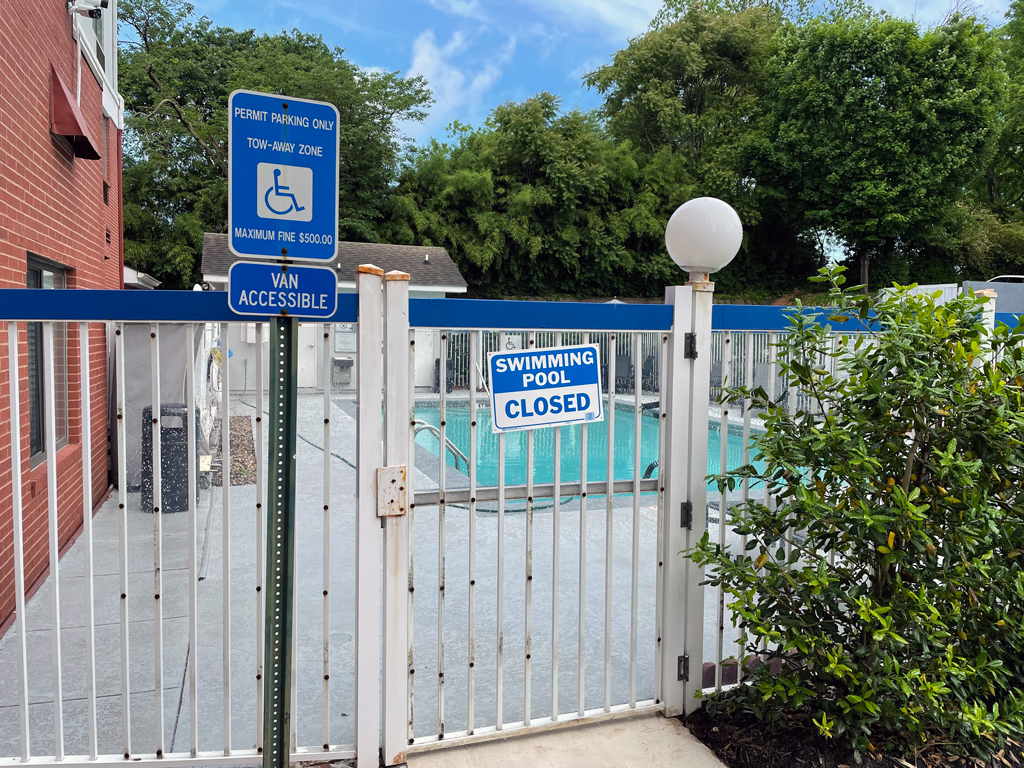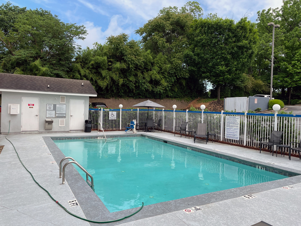 Das Hotel bietet einen Parkplatz mit kostenfreien Parkplätzen an. Und einen kleinen Freiluftpool gibt es auch.