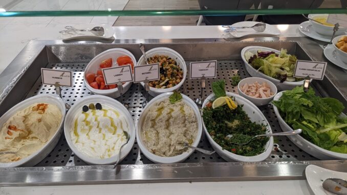 Die Falcon Gold Lounge bietet seinen Gästen in einem separaten Raum ein Buffet an und im Hauptgang können an diversen Sitzmöglichkeiten Getränke zu sich genommen werden. Das Essen kann aber aus dem Buffet-Bereich auch dorthin mitgenommen werden. Egal ob Soft-Drink, Champagner, Bier oder Wasser, mit großer Wahrscheinlichkeit werdet Ihr fündig und das Bananenbrot hat sowohl meiner besseren Hälfte als auch mir gut geschmeckt.
