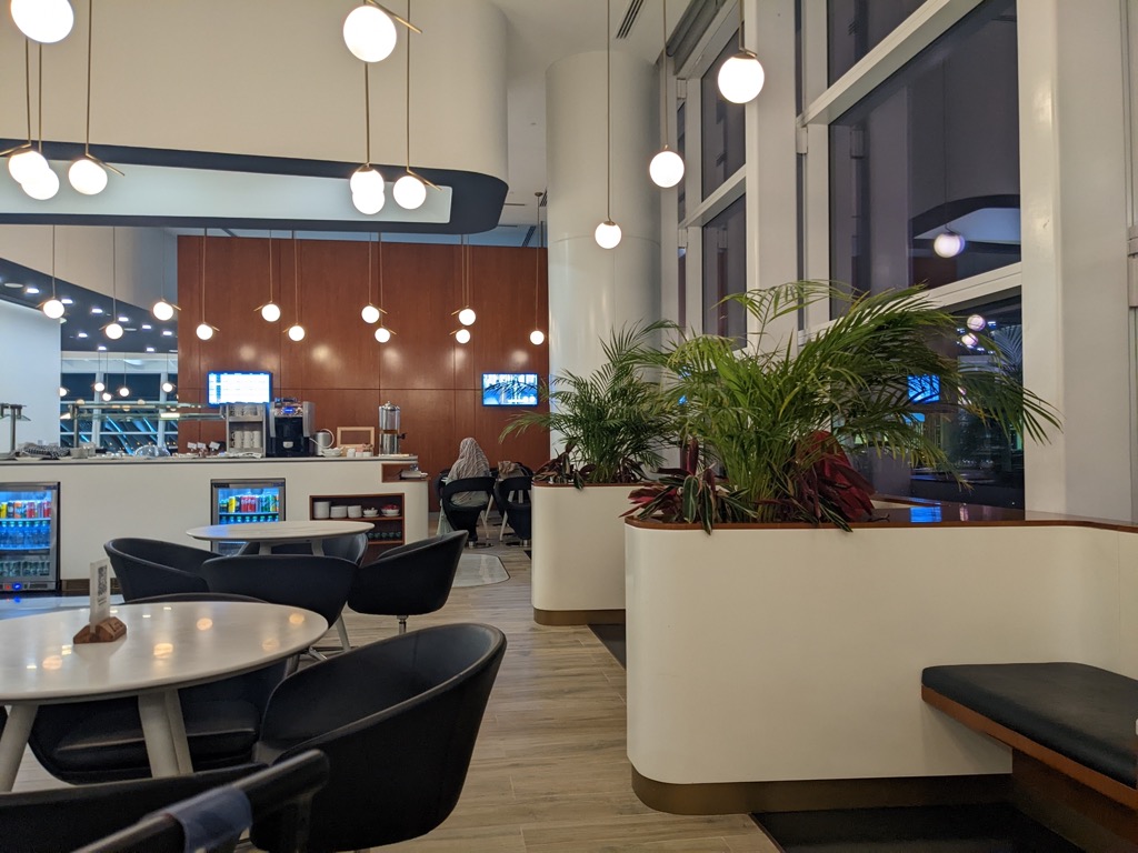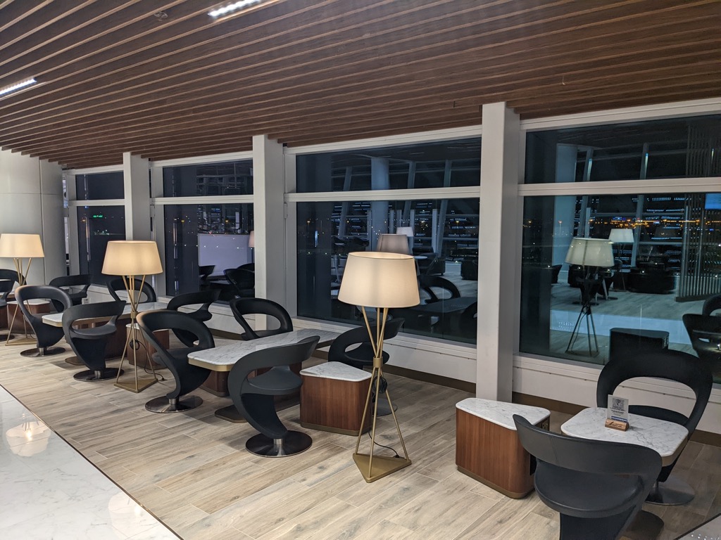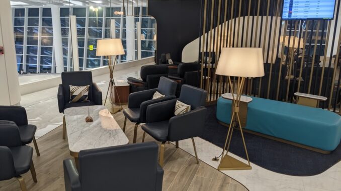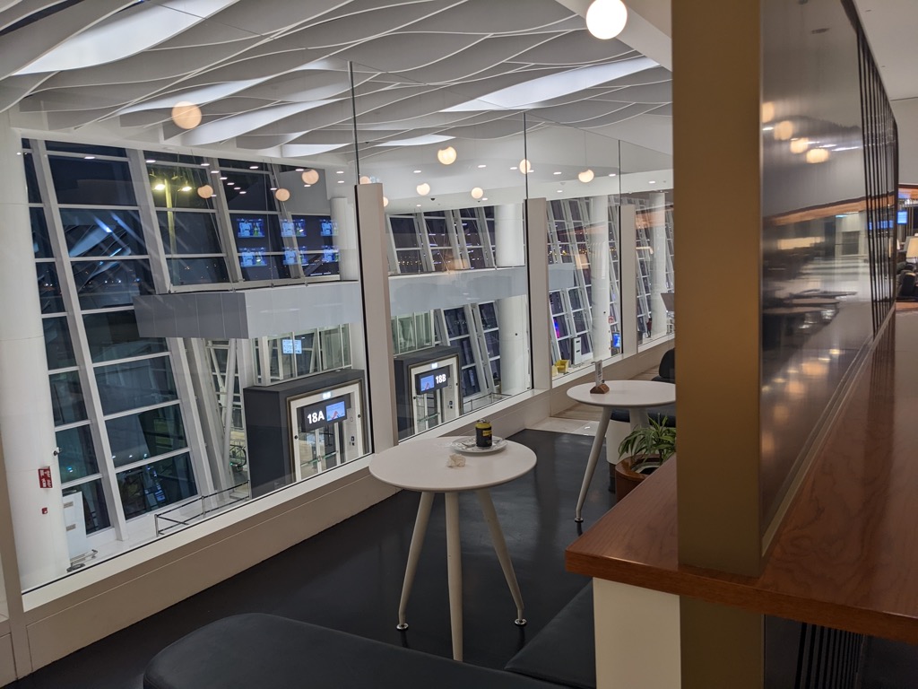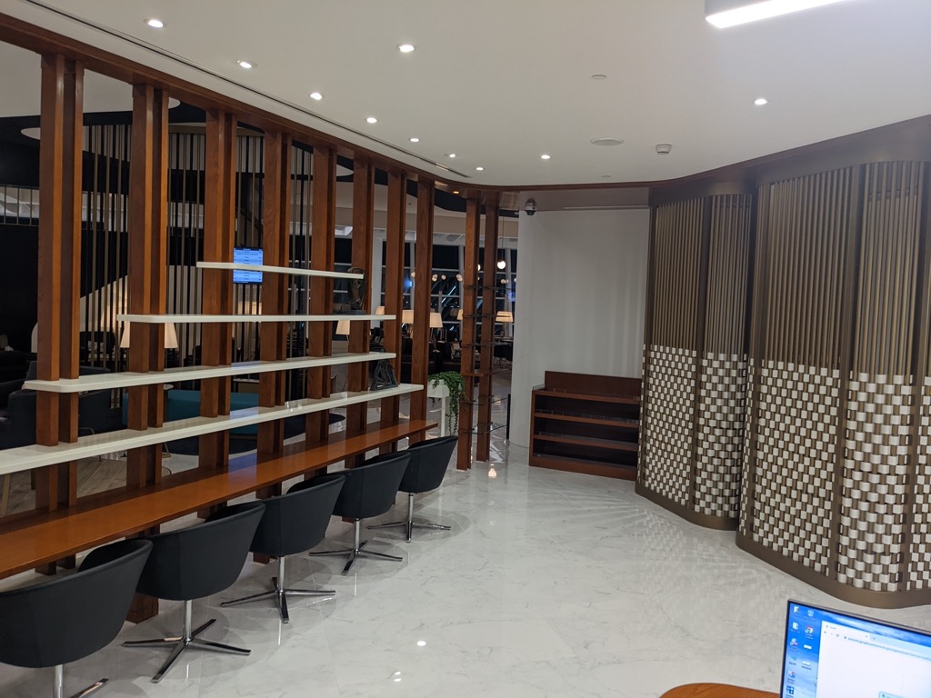 Wie es sich für eine Lounge am eigenen Hub und in einem Neubau gehört, ist die Lounge groß, bietet tagsüber einen Blick auf das Rollfeld, diverse unterschiedliche Sitzmöglichkeiten und wie zuvor erwähnt eine Bar mit alkoholischen Getränken. Ergänzend dazu habt Ihr die Option, an der Rezeption Euer Gepäck sicher abzulegen. Im Folgenden einige Fotos, damit Ihr ein besseres Bild erhaltet.