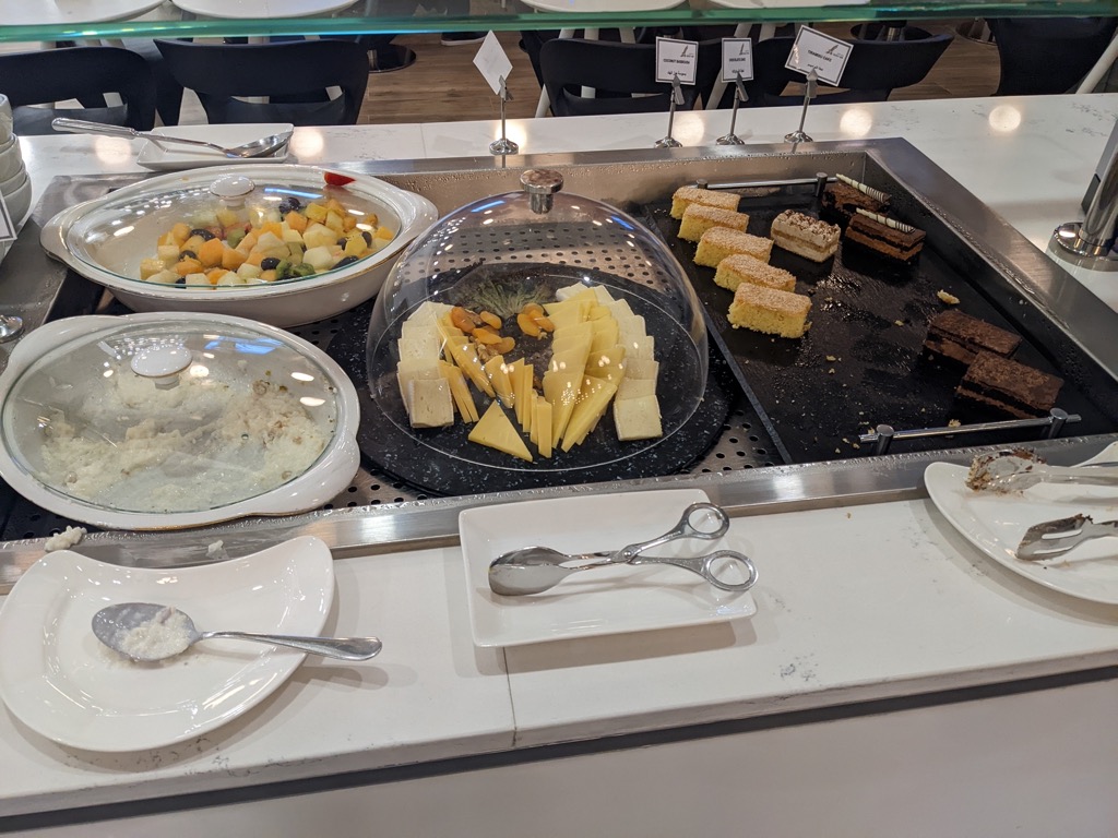 Die Falcon Gold Lounge bietet seinen Gästen in einem separaten Raum ein Buffet an und im Hauptgang können an diversen Sitzmöglichkeiten Getränke zu sich genommen werden. Das Essen kann aber aus dem Buffet-Bereich auch dorthin mitgenommen werden. Egal ob Soft-Drink, Champagner, Bier oder Wasser, mit großer Wahrscheinlichkeit werdet Ihr fündig und das Bananenbrot hat sowohl meiner besseren Hälfte als auch mir gut geschmeckt.