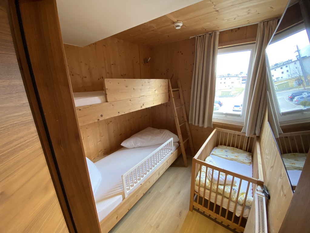Unser großes Plus waren die 7 zusätzlichen Quadratmeter, die sich nach viel mehr angefühlt haben. Vielleicht auch deswegen, da es einen kleinen abgetrennten Raum mit Stockbett gab. Hier platzierten wir ein Gitterbett und den Klappwickeltisch. Unsere Zwillinge machen sich nachts gerne gegenseitig wach, daher war das eine angenehme Überraschung, die wir gerne angenommen haben.