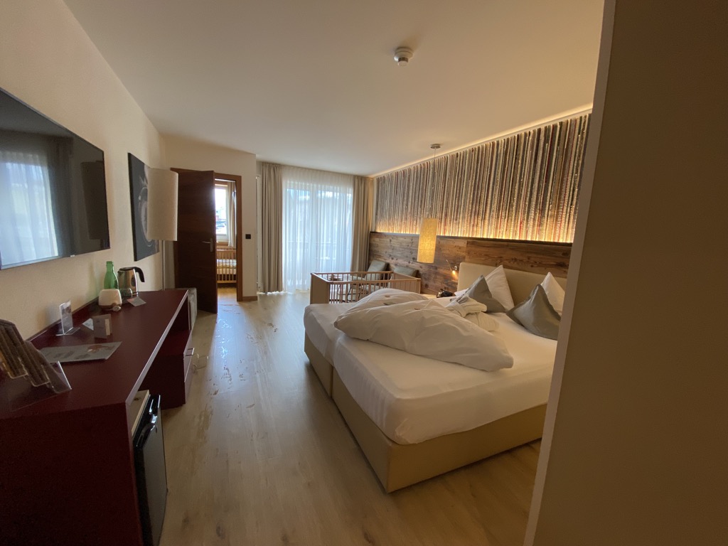 Angekommen in der gebuchten Junior Suite stellten wir fest, dass man mit zwei Reisebetten und einem Zwillingskinderwagen nur noch wenige Zentimeter findet, um den Koffer zu öffnen oder sich zu angenehm bewegen. Sicher ist hier unsere Situation speziell. Mit einem Kind ist dieses Zimmer sicher absolut in Ordnung. Wie bereits erwähnt, fragten wir nach einem Upgrade. Wir hatten Glück. Wenige Minuten zuvor war ein größeres Zimmer, eine Family Suite, frei geworden. Der Aufpreis von 28€ pro Tag war es uns wert. Gerne möchten wir Euch einen Einblick in beide Zimmerkategorien bieten.