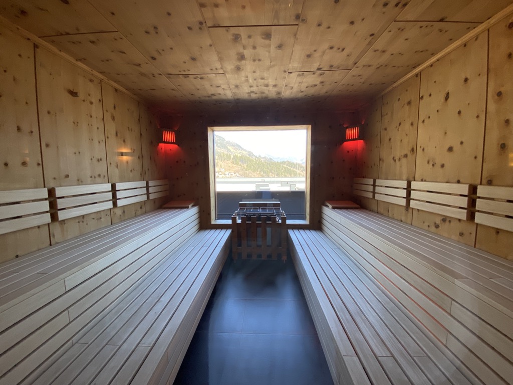 Hier gibt es neben einem großen Ruhebereich mit tollen Blick einen Bereich, in dem man sich Tee kochen und an Zeitschriften und Wasser bedienen kann. Von hier aus gelangt man auch in verschiedene Saunen, zu den Duschen und in ein Dampfbad. Ich war gegen 11 Uhr im Wellnessbereich und er war leer. Ich war die einzige anwesende Person, was mich sehr überrascht hat.