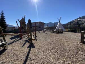 Wir haben mit unseren Babys nur die Schaukeln benutzt, aber die älteren Kinder hatten hier einen unglaublichen Spaß. Der komplette Bereich ist eingezäunt, es ist also ab einer bestimmten Altersgruppe auch möglich, dass die Kinder dort alleine spielen.