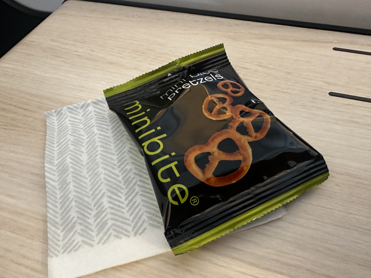 Nach dem Start gab es zunächst warme Tücher und danach ein Aperitif mit Salzbrezeln.