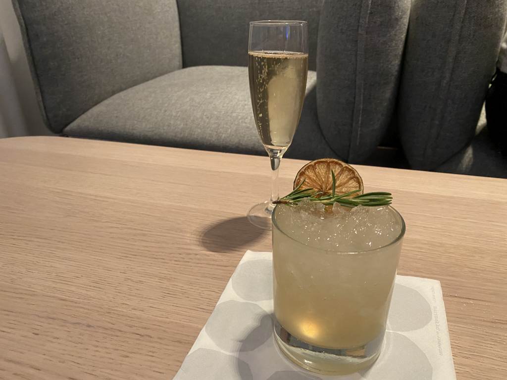 Während die Speisen eher wenig Wow-Faktor hatten, punktet die Selektion an Drinks dann schon mehr. Denn neben Weinen wird Gästen der Lounge auch Champagner angeboten. Besonders beliebt – zumindest bei uns – die Finnair-Variante des Gin Tonic mit Rosmarin und Beeren.