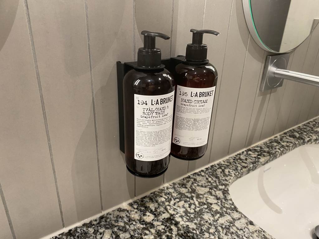An diesen Bereich anschließend verteilen sich weitere Lounge-Möbel, die zum verweilen einladen. Folgt Ihr dem parallel laufenden Gang gelangt Ihr zu den Toiletten und Duschen. Außerdem steht ein Drucker bereit, mit dem Ihr noch schnell Dokumente ausdrucken könnt. Auf der den Toiletten gegenüberliegenden Seite gibt es eine kleine Kinderzone mit Spielzeug, Malsachen und eine Moomin-Lampe.