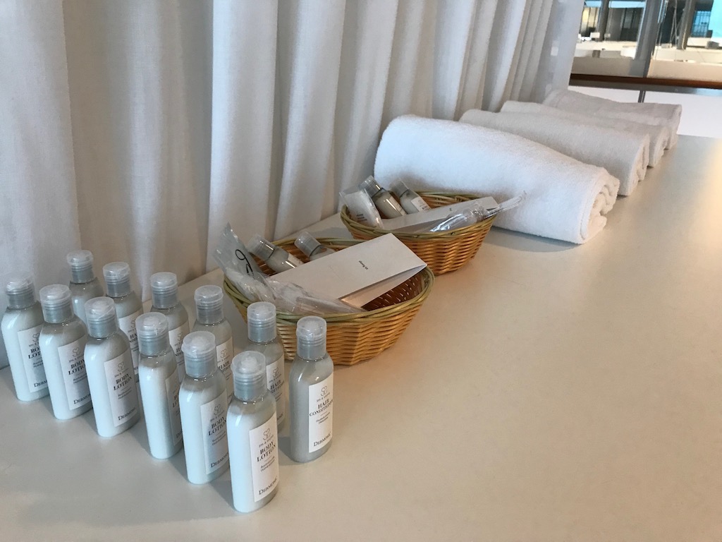 Weiterhin gibt es auch eine Arbeitszone, in der Computer bereitstehen. Auch Duschen ist in der Lounge möglich. Hierfür muss allerdings eine „Anmeldung“ beim Loungepersonal zunächst erfolgen.