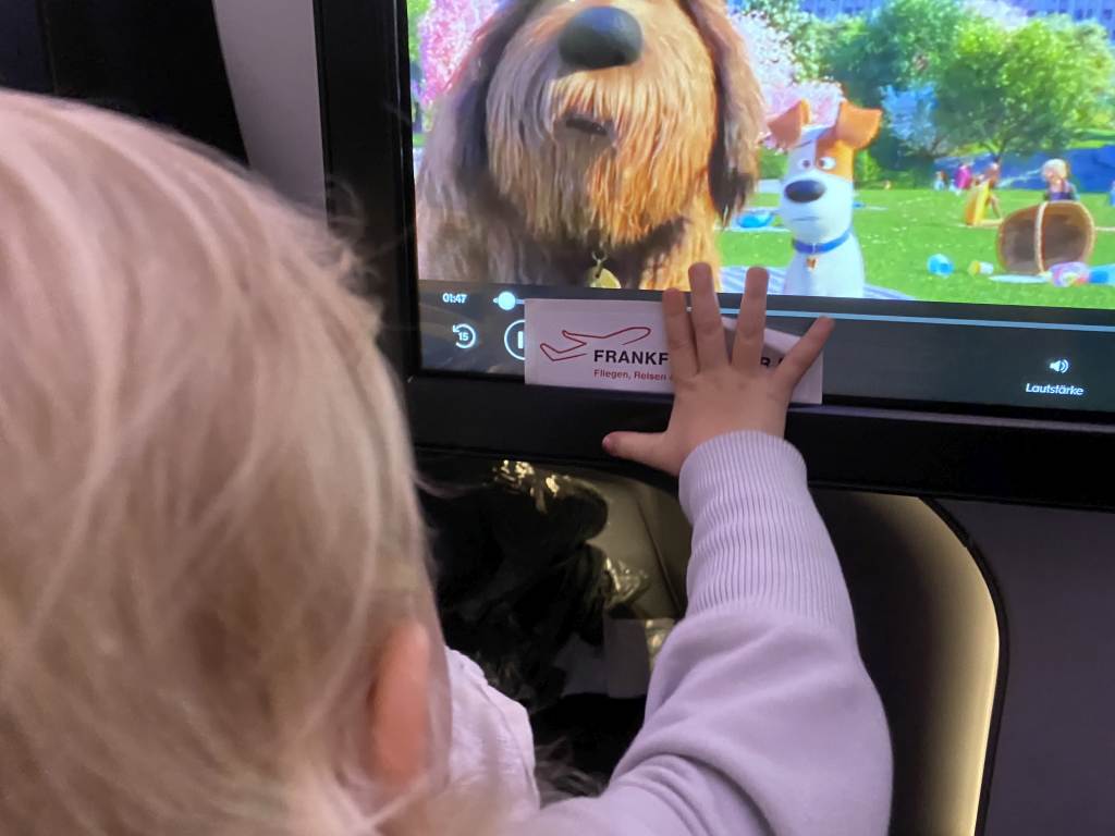 Der neue Business Class Sitz ist aber auf jeden Fall auch ohne Nutzung eines Baby-Bassinets für kleine Kinder geeignet. Die Sitzfläche bietet ausreichend Platz, um auch nebeneinander zu sitzen und auch zu schlafen. Zumindest wenn es etwas kuschelig sein darf. Nun hatten wir das Glück, dass einige Sitze um uns herum frei blieben und wir ausweichen konnten, wir hätten den Flug aber auch ohne das überstanden.