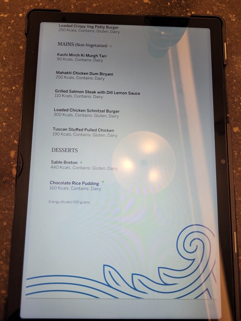 Es gab hier auch ein wirklich kleines Buffet und zudem wurde jedem Gast ein Tablet mit der Speisekarte gereicht.