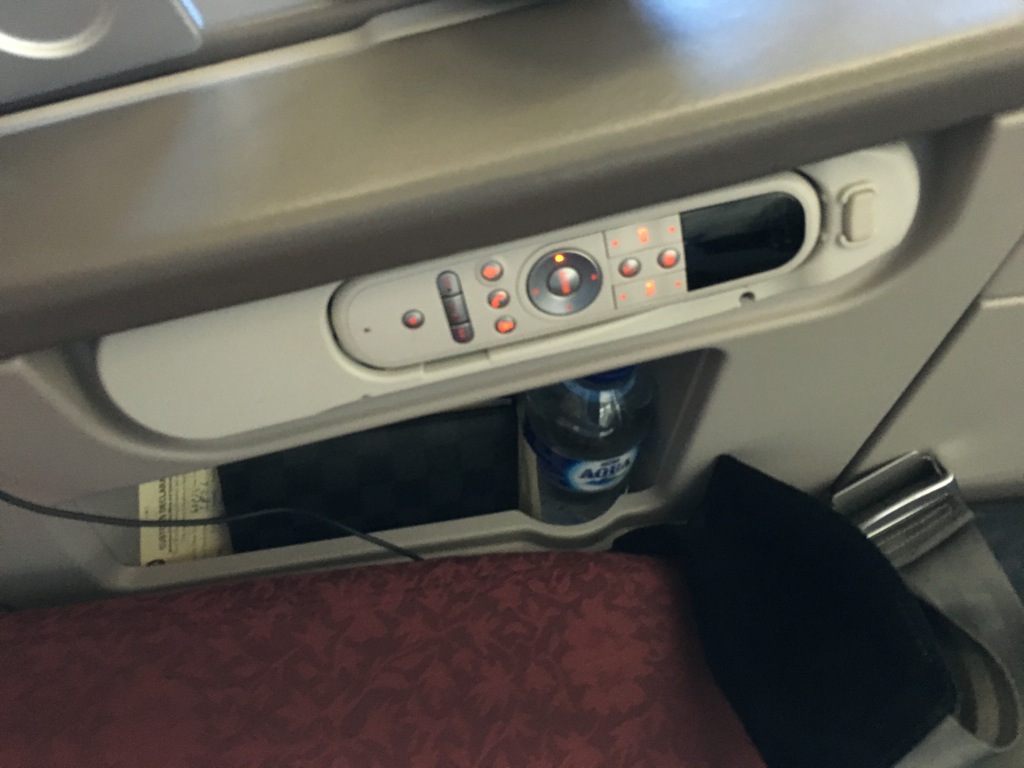 Der Sitz bot einige Ablagefächer, wie zum Beispiel ein Schuhfach oder einem Zeitungsfach, welches für die Passagiere gedacht war. Auch unter dem Controller des IFE war noch eine weitere Ablage, in welcher man wunderbar seinen Pass und Geldbeutel unterbringen konnte. Auch eine Wasserflasche war an jedem Sitz bereits beim Einsteigen vorhanden.