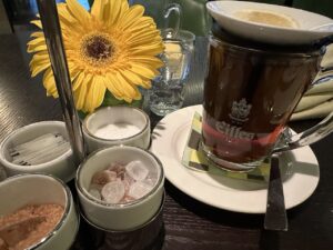 Und das mit dem Geburtstag ist nichts besonderes: zum einen Schmalzgebäck ( oder etwas anderes ) gab’s bei mir immer ( auch ohne Geburtstag ) – ist doch nicht Luxury Collection. Im Marriott Wien gab‘s für mich an meinem Geburtstag auch nix. In Mailand im Excelsior Gallia war das ganz anders, da gab‘s wirklich gutes. Allerdings war der Zimmerpreis auch a bissl höher …
