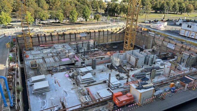 Und die Baustelle gegenüber war früher der Hotelparkplatz. Nun heißt es halt rumgurken und hoffen, in der Nähe was zu bekommen.