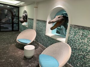 Hierbei erhielten wir noch nützliche Informationen über die Nutzung der Sauna, da diese zu bestimmten Zeiten erst auf Anfrage eingeschaltet wird, außerdem wurden wir auf das inbegriffene Frühstück am nächsten Morgen (Sonntags bis 12 Uhr!) hingewiesen. Auch sonst bitet die Lobby viele gemütliche Gelegenheiten an zu verweilen.