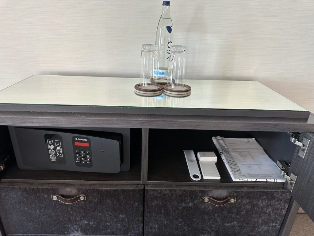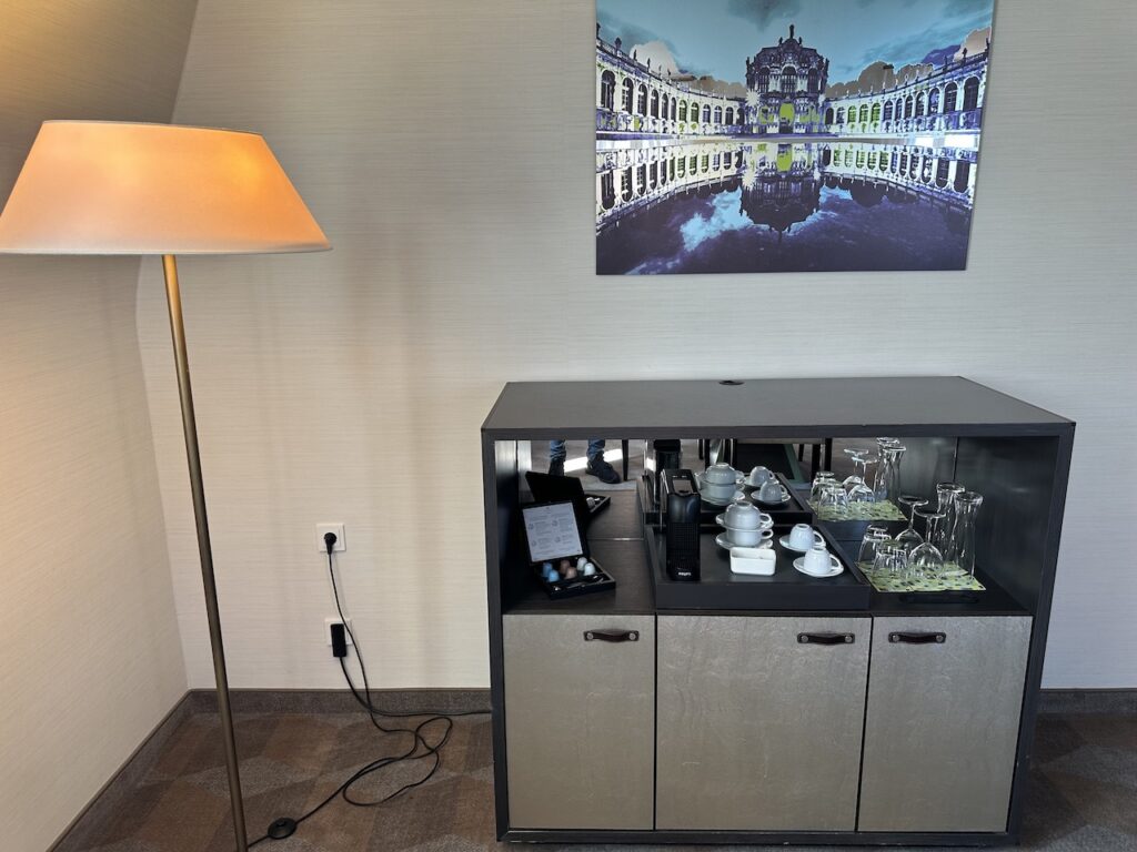 Die im Zimmer vorhandene Kaffeemaschine wurde sogar während unseres kurzen Aufenthalts am Abend während des Turn Down Service frisch mit Kaffeekapseln bestückt.