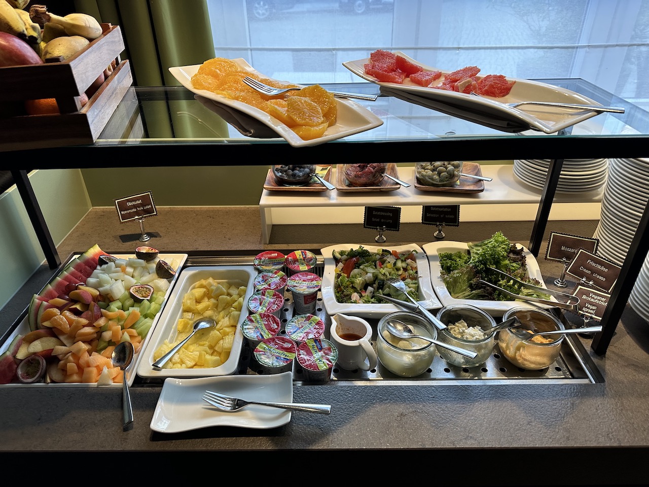 Vom Frühstück waren wir beide sehr positiv angetan, beim Betreten des Restaurants wurden wir freundlich empfangen. Am Platz angekommen wurden wir auch gleich nach unserem Kaffee- oder Teewunsch gefragt. Außerdem wurden wir auf die extra Speisekarte mit weiteren Eierspeisen hingewiesen. Hier entschieden wir uns für ein sehr gutes Eggs Benedict mit Lachs.