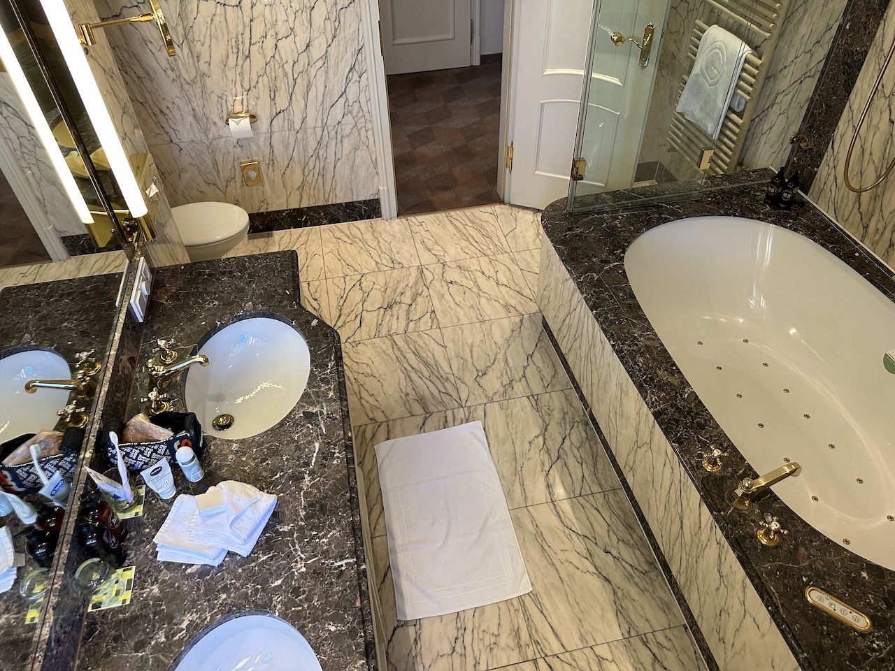 Und das mit dem Geburtstag ist nichts besonderes: zum einen Schmalzgebäck ( oder etwas anderes ) gab’s bei mir immer ( auch ohne Geburtstag ) – ist doch nicht Luxury Collection. Im Marriott Wien gab‘s für mich an meinem Geburtstag auch nix. In Mailand im Excelsior Gallia war das ganz anders, da gab‘s wirklich gutes. Allerdings war der Zimmerpreis auch a bissl höher …