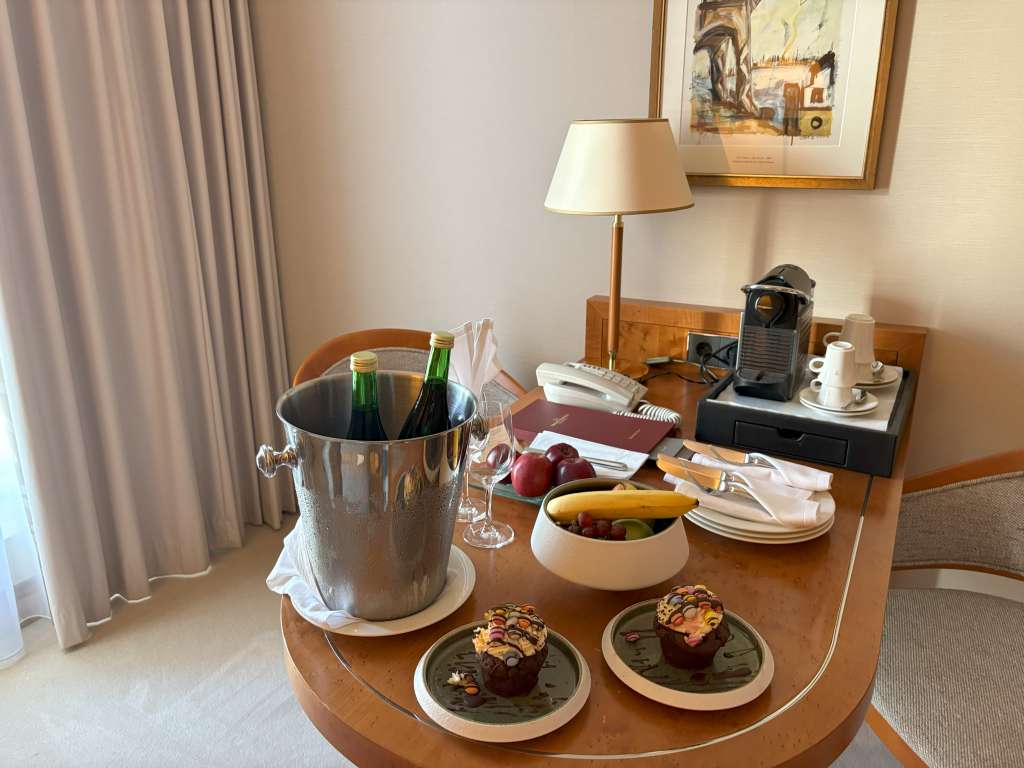 Als Extra-Service wartete dank unserer Buchung über Frankfurtflyer Hotels auch eine Aufmerksamkeit zur Begrüßung auf unserem Zimmer. Das wurde voll auf die Kids gemünzt. Leckere Cupcakes, jede Menge Obst und spritziger Traubensaft sorgten mindestens für so viel Begeisterung wie das ganz besondere Willkommensschreiben der Frankfurtflyer Reiseberater.