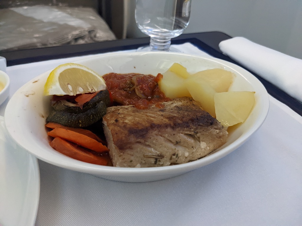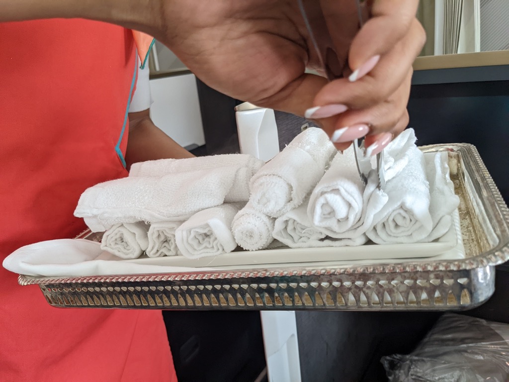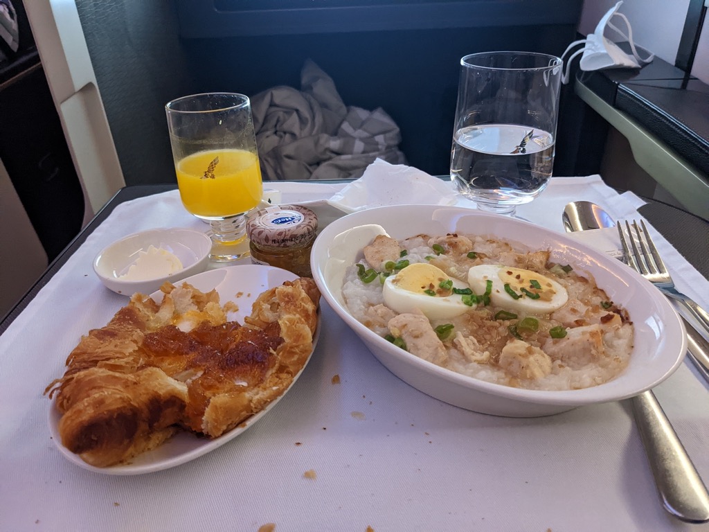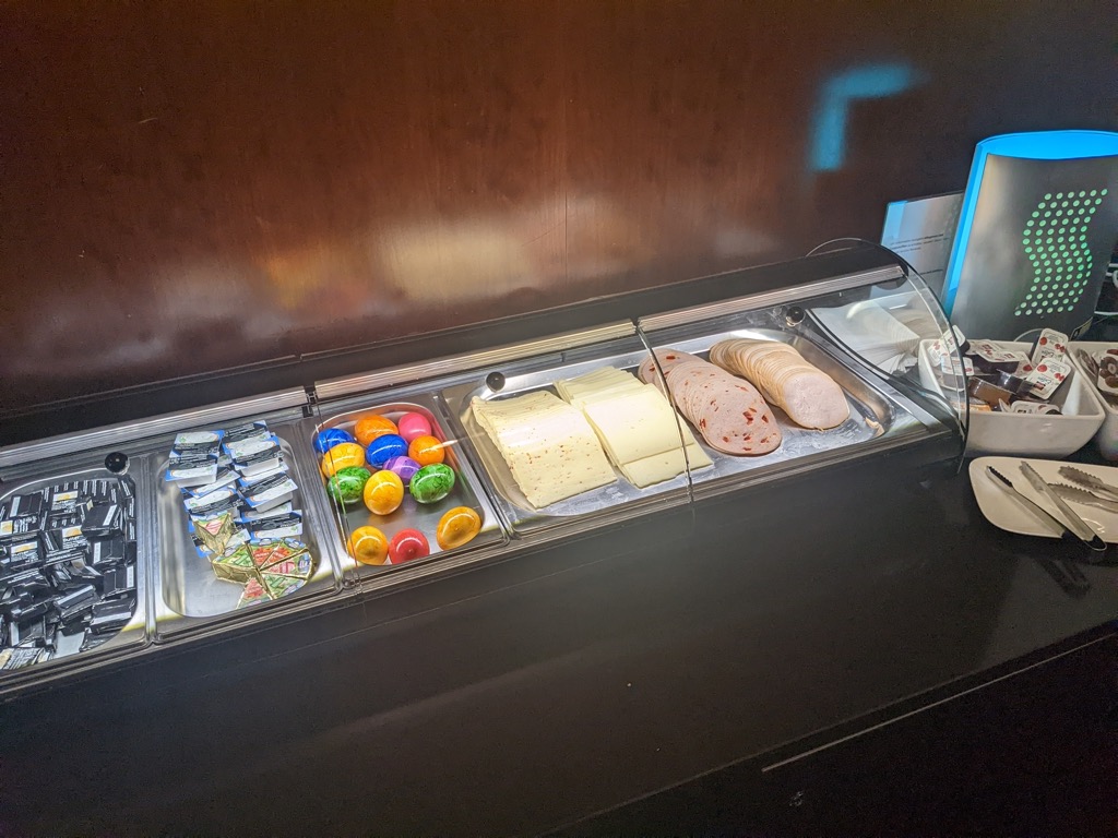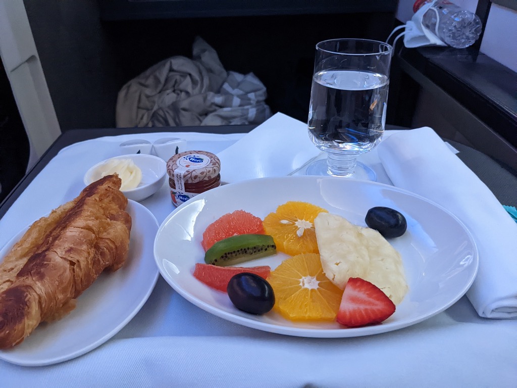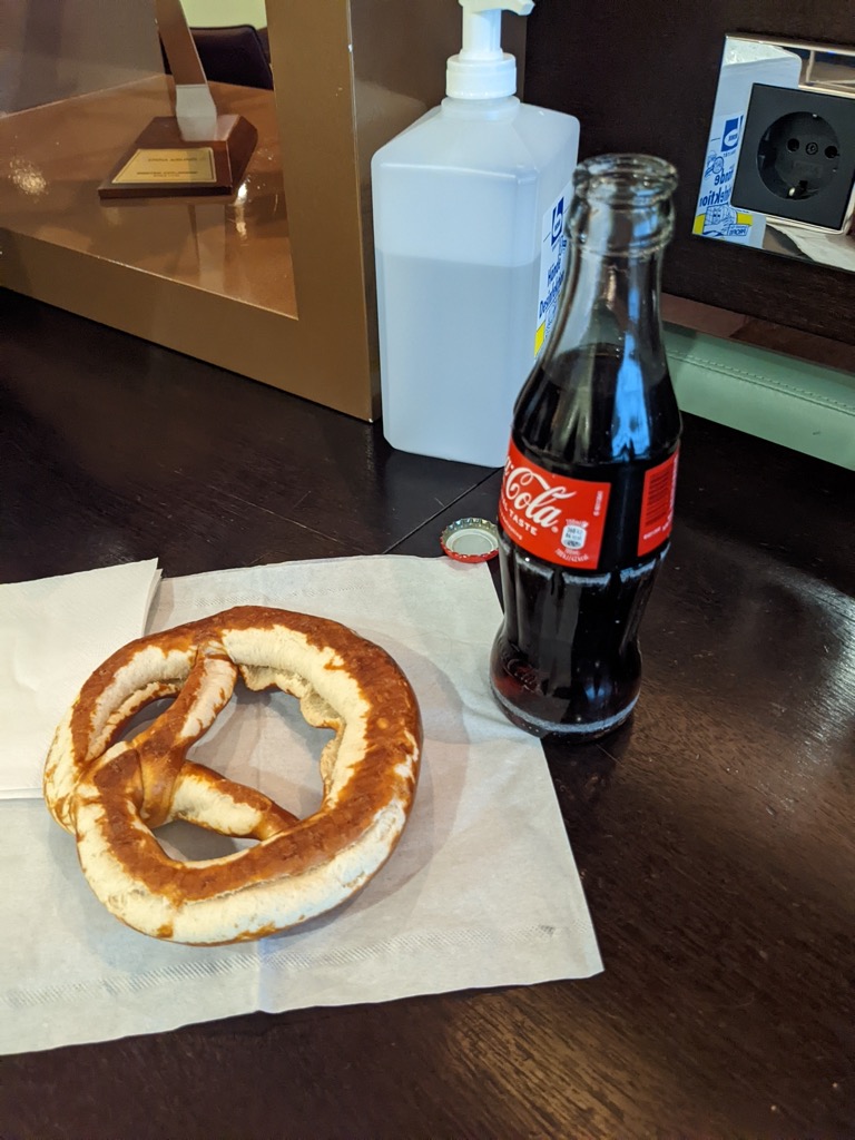 Da wir bereits früh morgens abgereist sind, haben wir uns in der Lounge ausgeruht, gegessen und getrunken, bevor es anschließend zum Gate ging. Aufgrund der Pandemie mussten wir unsere Verpflegung über eine Webseite bestellen. Hierfür steht ein QR Code am Tisch zur Verfügung. Das hat gut funktioniert und selbstverständlich könnt Ihr so viel bestellen wie Ihr möchtet. Sowohl das Essen als auch die Getränke werden schnell zum Tisch gebracht und haben uns geschmeckt.