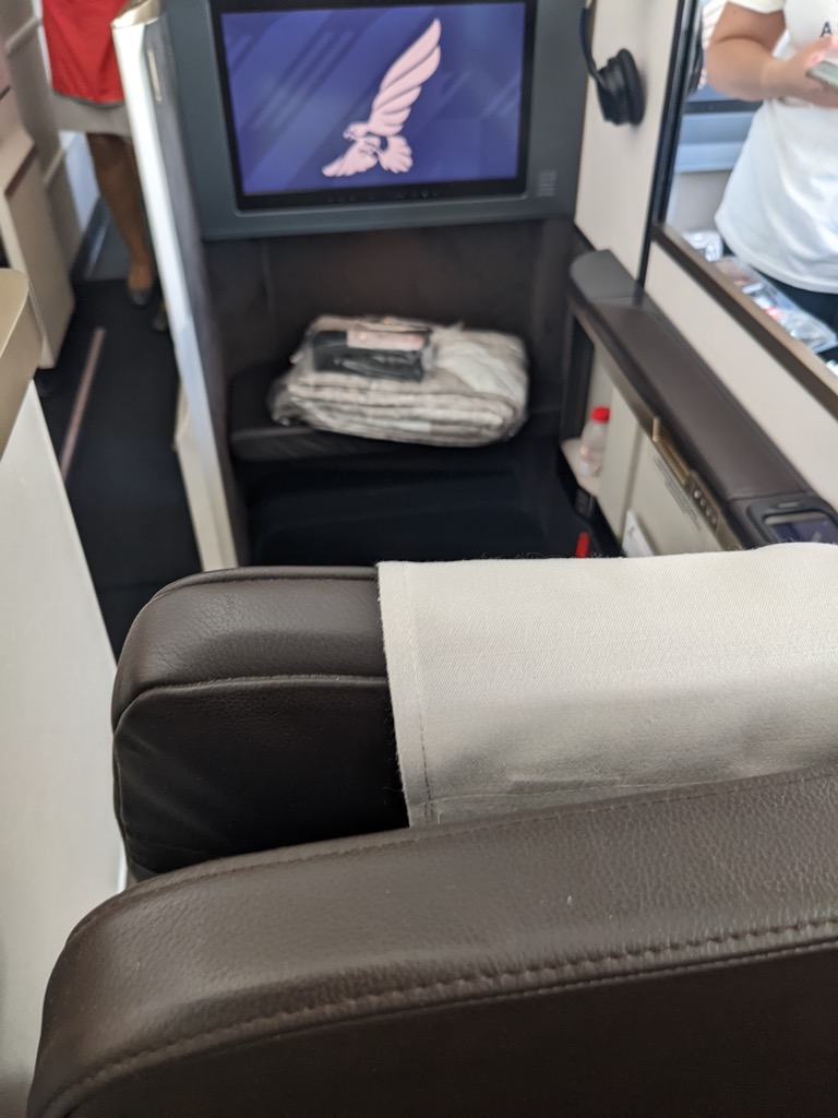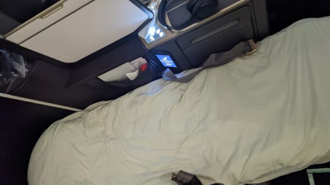 Bei dem Turndown Service verwandelt ein Crew-Mitglied den Lie-Flat Sitz in ein Bett, bestehend aus einer Matratzenauflage und einem Bettbezug. Den Unterschied konnte ich durchaus wahrnehmen und werde diesen Service in Zukunft immer wahrnehmen.