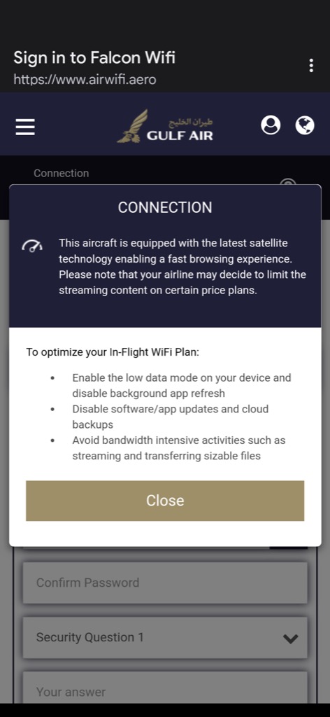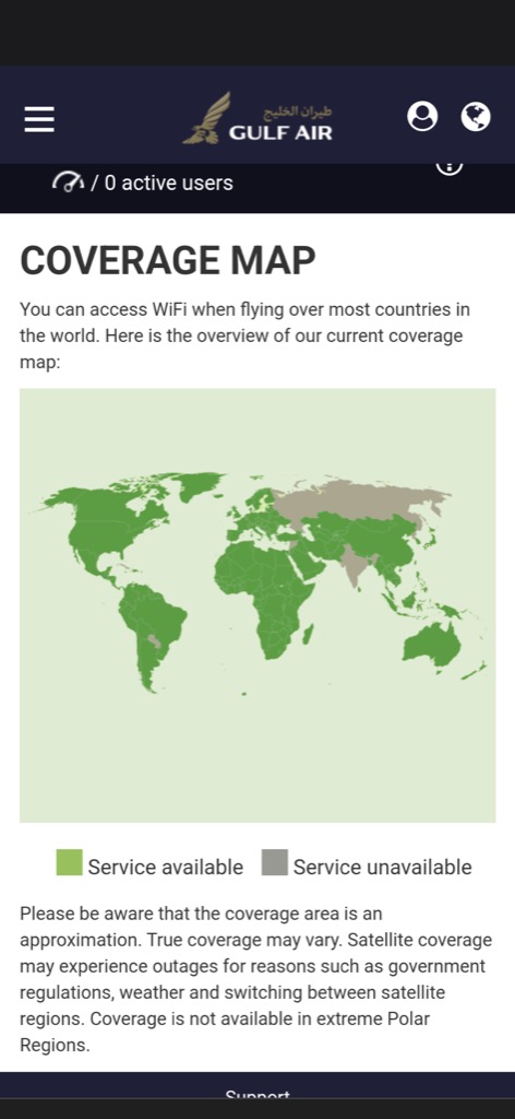 Während Turkish Airlines 1GB (Stand 2021, MNL-IST) und Saudia Airlines 10MB (Stand 2020, MNL-JED) zur Verfügung stellt müsst Ihr bei Gulf Air für WiFi Geld in die Hand nehmen. Los geht es mit 10 USD (Stand 2022, MNL-BAH), um für den gesamten Flug WiFi zu erhalten. Das WiFi hat auf dem gesamten Flug mit Ausnahme des Überfluges von Indien gut funktioniert.