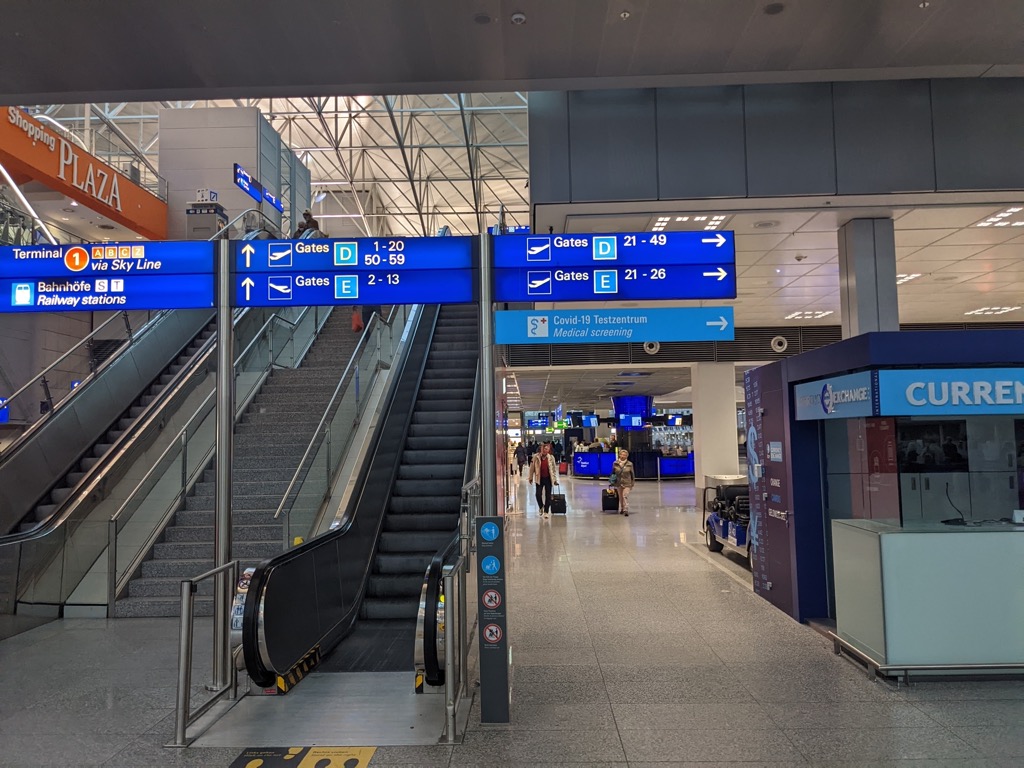 In Frankfurt findet der Check-In in Terminal 2 statt und die Check-In Counter befinden sich im Bereich D, quasi direkt bei den Aufzügen, wenn man mit dem SkyTrain das Terminal wechselt. Da sich die Grenzkontrolle ebenfalls in der Nähe befindet ist es sehr praktisch.