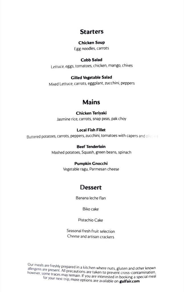 Gulf Air Business Class Manila Bahrain | Getränke und Essen