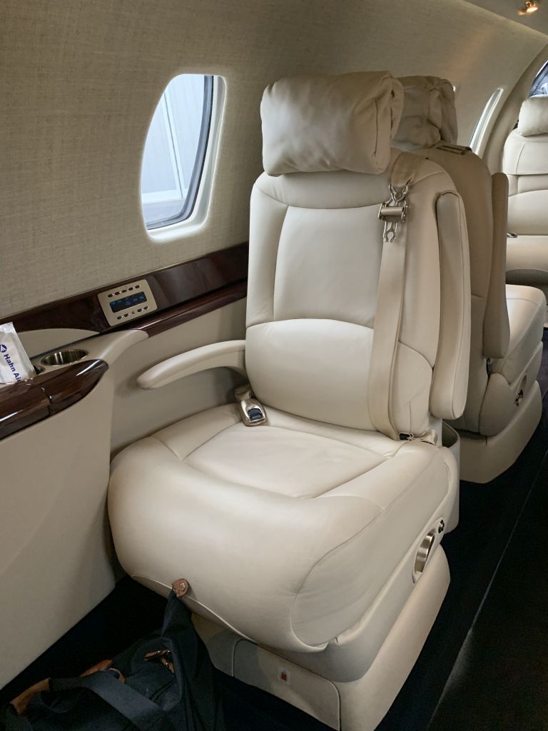 Einige Fotos später ging auch ich an Board der Cessna Citation, um dann festzustellen, dass es sich gar nicht um die CJ4 mit sechs Sitzen handelte, sondern um die Cessna Citation Sovereign mit acht Sitzen. Diese Maschine setzt Hahn Air auch für Flüge nach Palma de Mallorca ein. Wir hatten also ein Aircraft-Change auf die „größere“ Maschine.