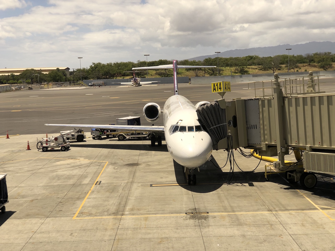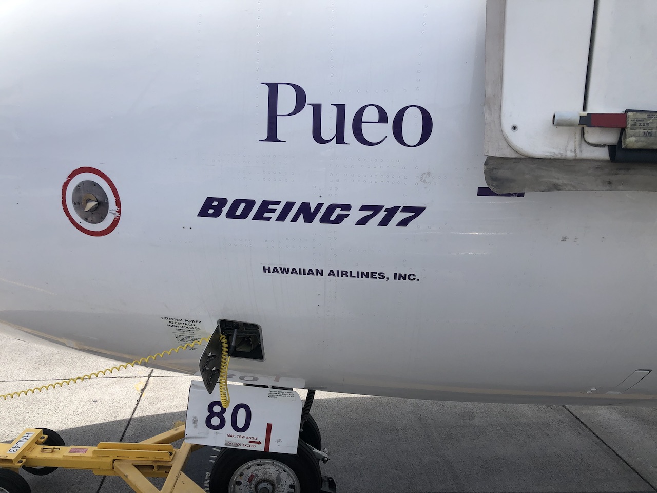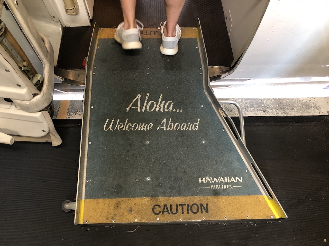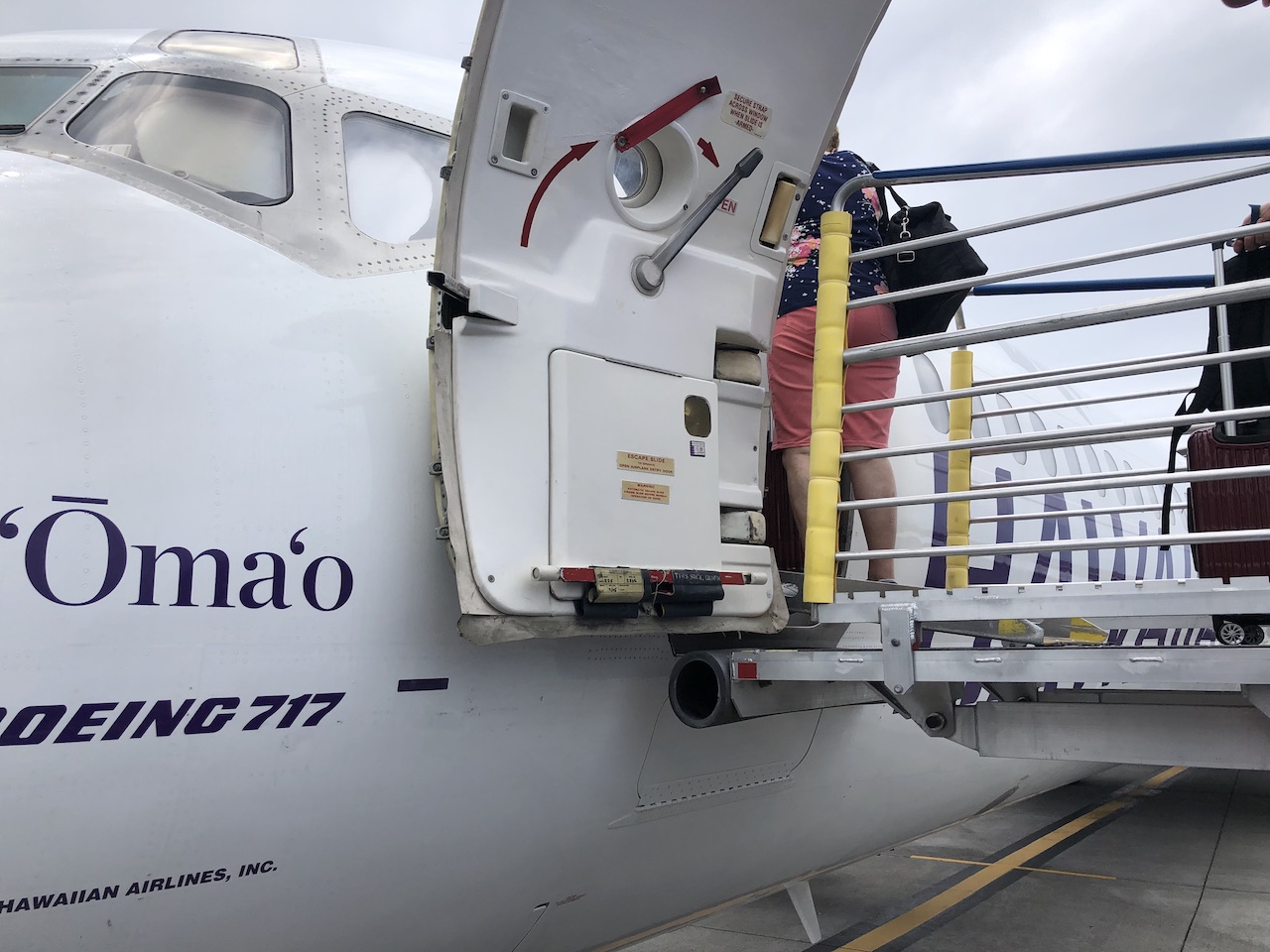 Auch die Mitarbeiter am Boden scheinen tatsächlich sirekt bei Hawaiian angestellt zu sein, ein gewisser Teamgeist war mehrfach zu spüren. Die weiblichen Flugbegleiter tragen an Bord – wie im Firmenlogo auch – tatsächlich immer Blumen im Haar. Das Boarding findet manchmal unter freiem Himmel statt, die 717 passt aber auch an Fluggastbrücken.