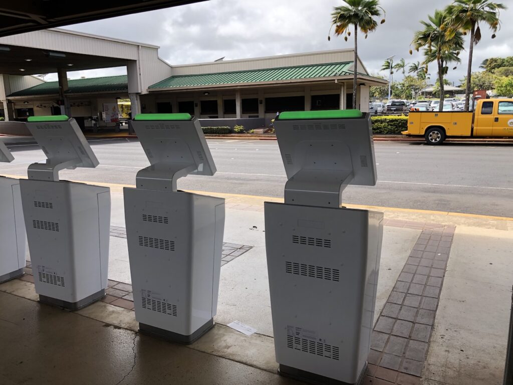 Wir haben dort immer eingecheckt, die Gepäcklabel gedruckt und sind meist ohne Wartezeiten durchgekommen. Jeder Gast darf zwei Koffer kostenfrei einchecken, Hawaiian ist also alles andere als ein Billigflieger.