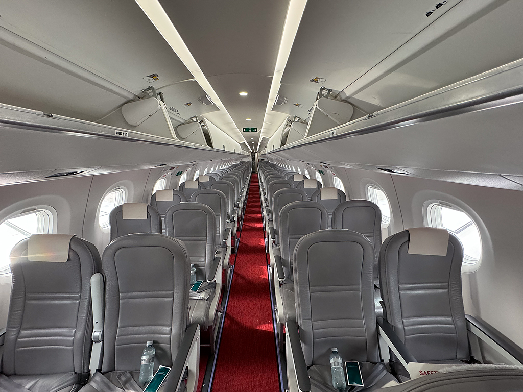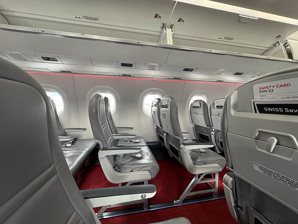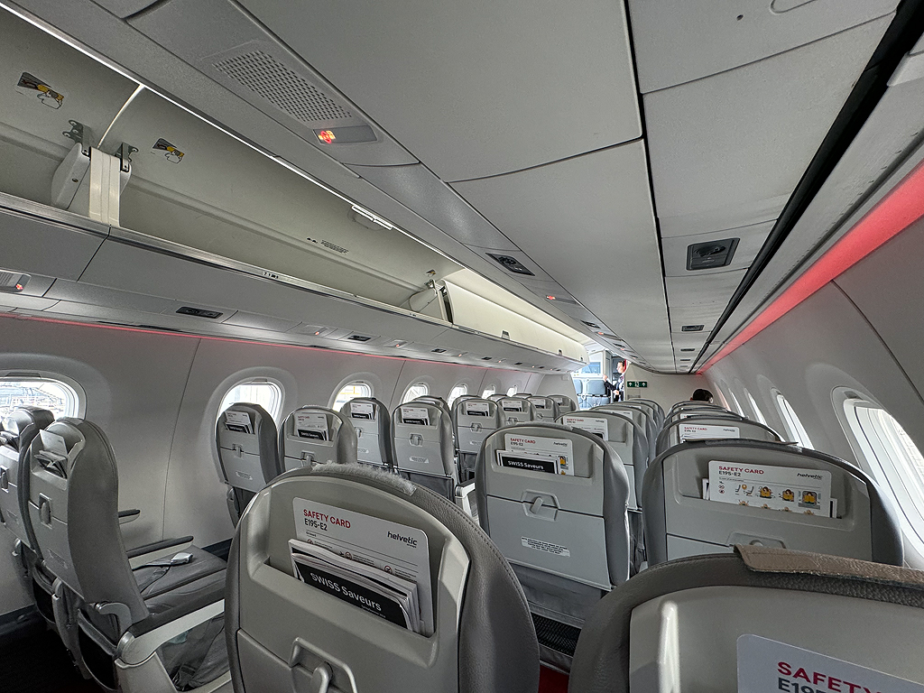 Die Embraer 195-E2 ist ein Flugzeug, das in den kommenden Jahren weltweit immer mehr zum Einsatz kommen wird. Helvetic betreibt dieses Muster für kurze Flüge innerhalb von Europa. Der Innenausbau des Flugzeugs ist für diesen Zweck angemessen. Längere Strecken würde ich in dem von Helvetic gewählten Setup nicht gerne fliegen. Das Fehlen einer Kopfstütze würde sich dann doch negativ bemerkbar machen.