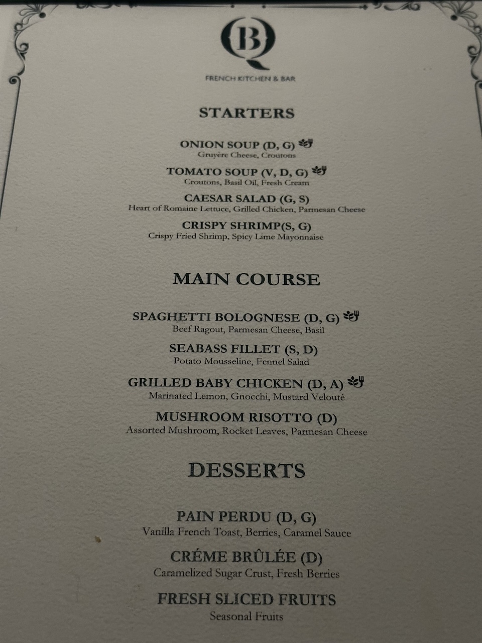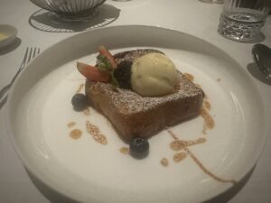 Zum Hotel gehören weitere Restaurants, Bars, ein Café und ein Pub. Ich wollte im „Rose & Crown“ zu Abend essen und habe dort eine entsprechende Karte erhalten. Nachdem ich bestellt habe, meinte die Kellnerin aber dass das Dinner nicht inklusive ist. Ich bin daraufhin ein weiteres Mal zur Rezeption um das zu klären. Dort wurde dann wieder herumtelefoniert, beinahe wollte ich entnervt in die Lounge um dann dort zu essen. Einer der Angestellten hat mich dann gefragt wo ich denn gerne essen wollen würde, er hat mir das französische Restaurant „BQ“ empfohlen und mich bis dorthin begleitet.