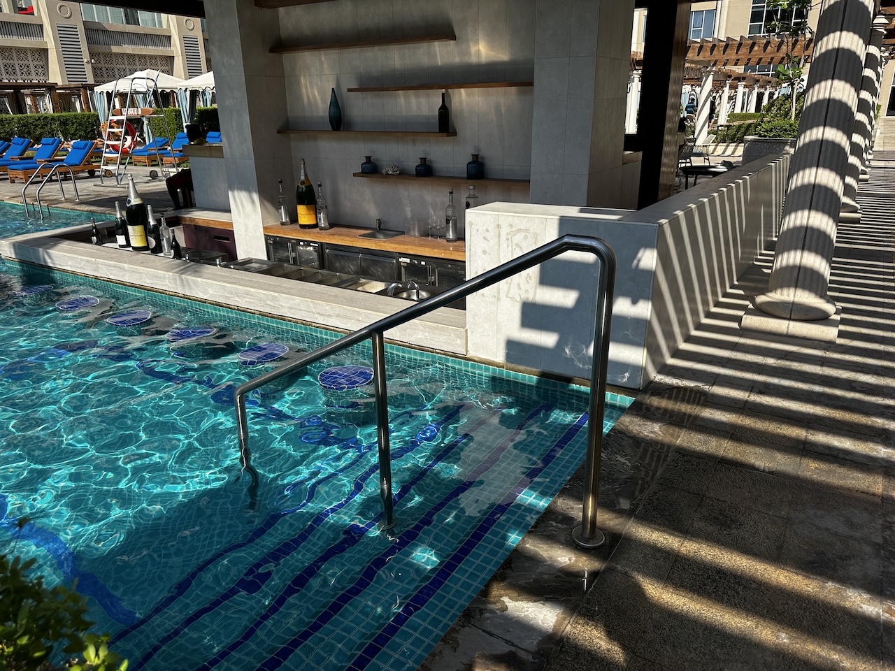 In der siebten Etage befindet sich die Poollandschaft mit mehreren Becken, Jaccuzzi und einer Bar.