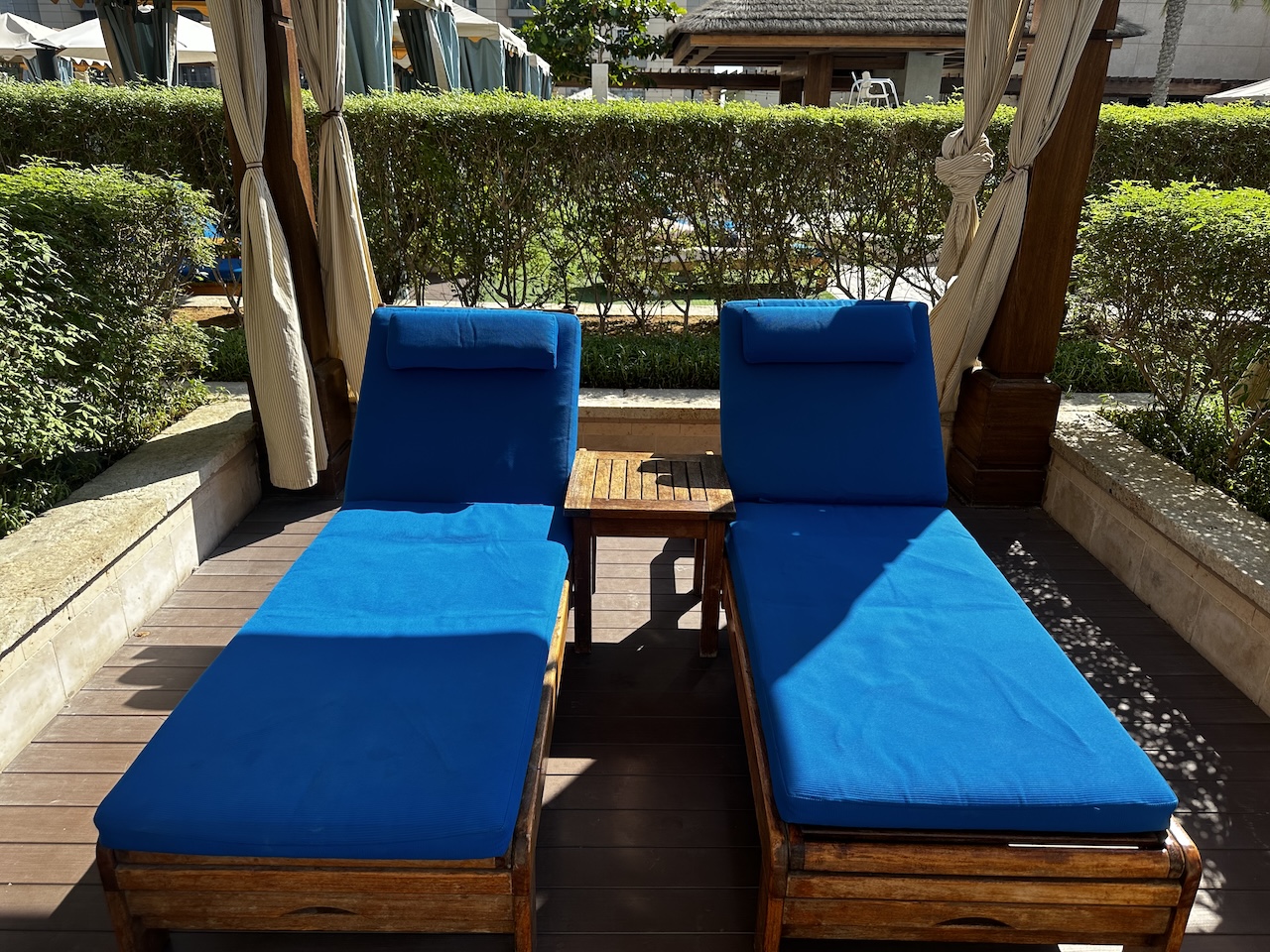 Es gibt mehrere Pavillons und auch größere Betten sowie einzelne Sonnenliegen. Zum Angebot gehört auch ein Kinderclub, der ab der zweiten Stunde bezahlt werden muss.
