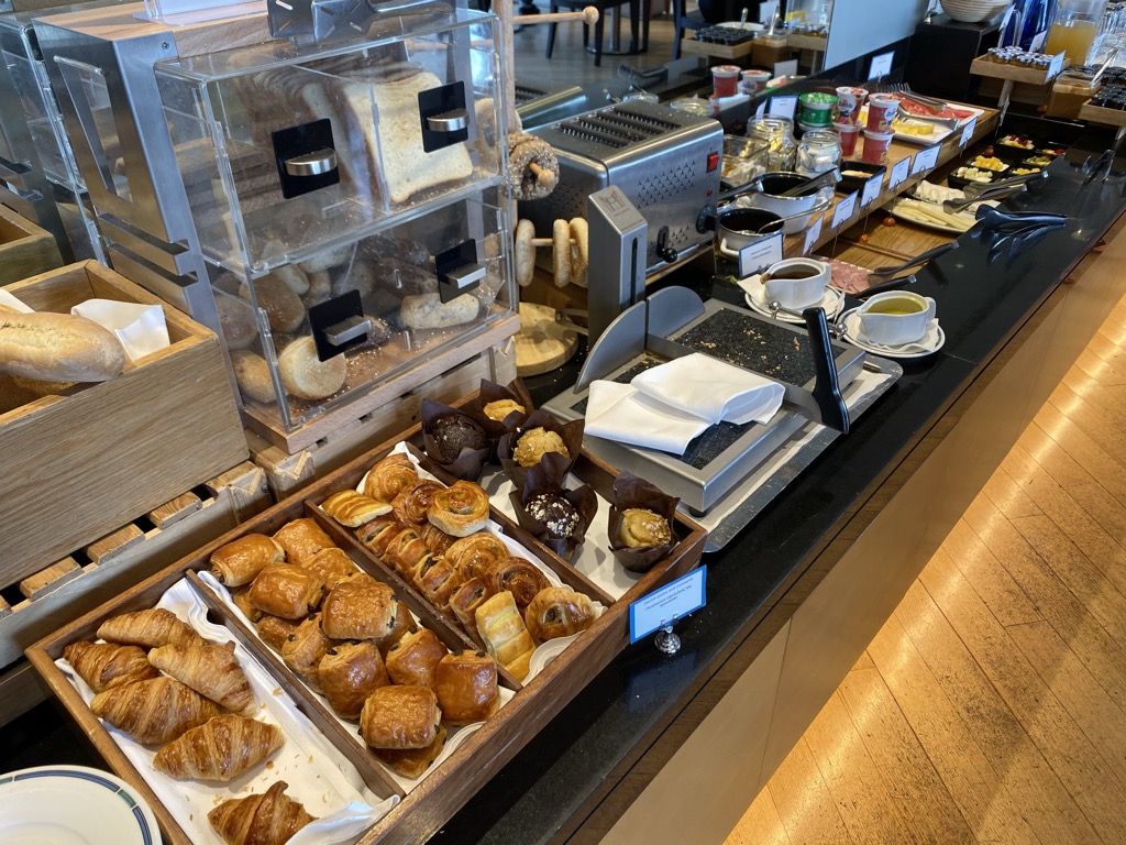 Auch der Executive Lounge haben wir einen ganz kurzen Besuch abgestattet. Sie befindet sich im obersten Stockwerk und ist mit verschiedenen Couchmöbeln ausgestattet. Auch hier war ein kleines Frühstücksbuffet aufgebaut.