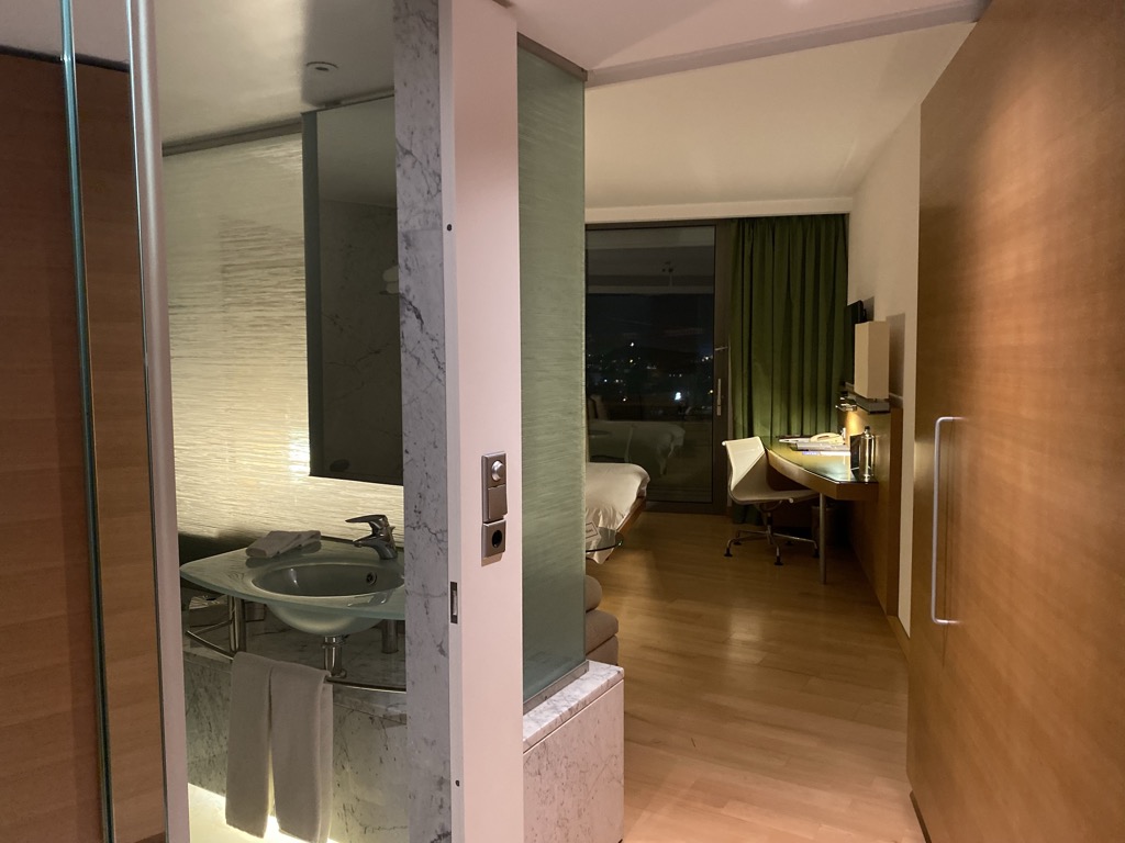 Die erste Station unserer Reise war das Hilton Athen. Der Flug aus Frankfurt startete planmäßig, aber recht spät am Tag. Entsprechend kamen wir um kurz nach ein Uhr nachts im Hilton Athen an. Nach einem angenehmen Flug in der Lufthansa Business Class wollten wir zügig aufs Zimmer um zu schlafen. Der Weiterflug sollte am nächsten Tag in der Mittagszeit nach Zürich starten.