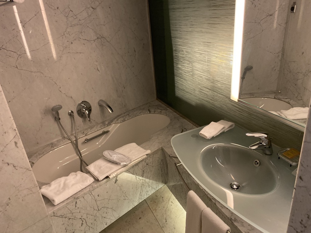 Das Badezimmer war in einem sehr sauberen Zustand, allerdings merkte man hier dem Hotel das Alter an. Es wirkte keineswegs abgelebt, allerdings auch nicht mehr taufrisch.