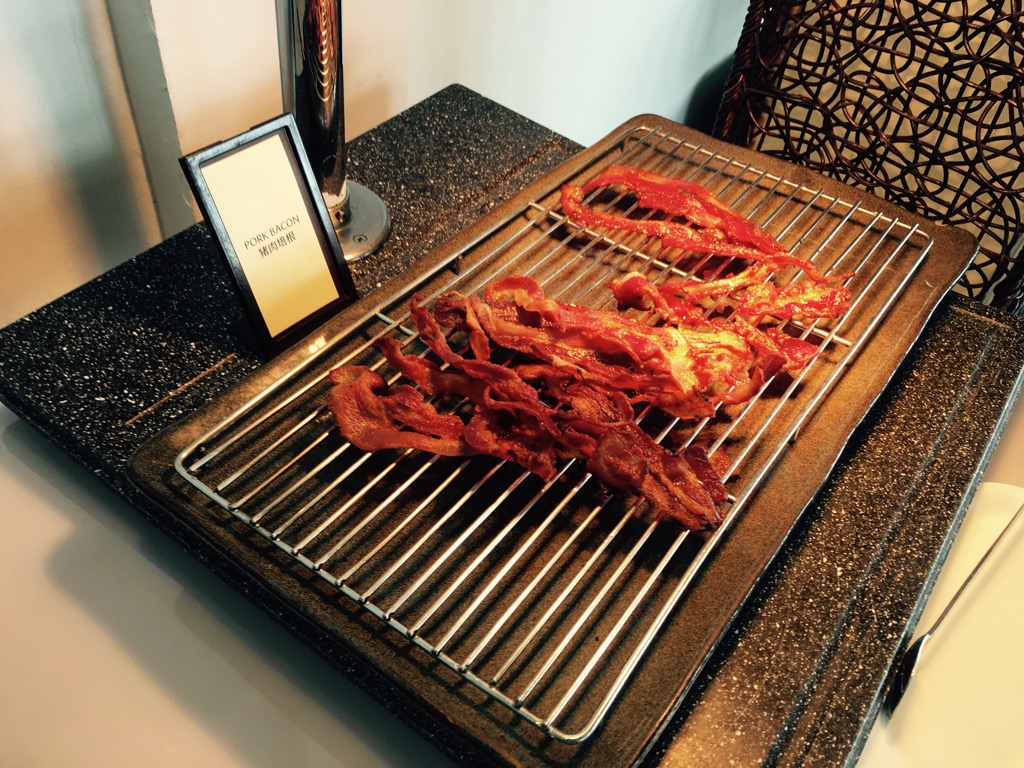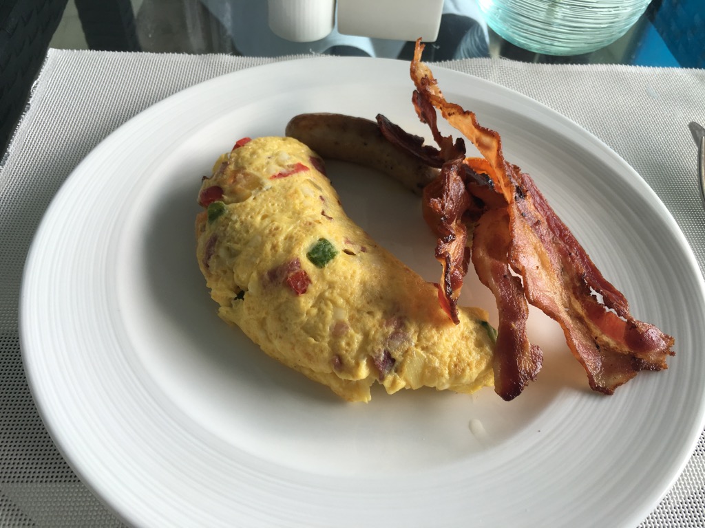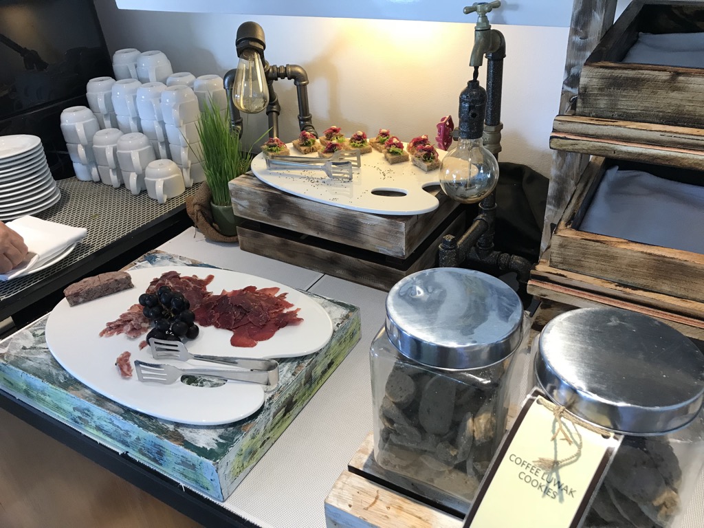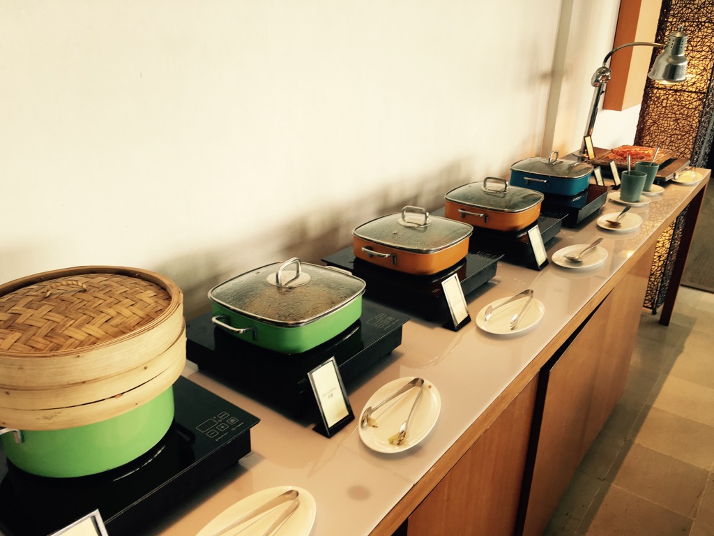 Uns wurde bereits beim Check-In gesagt, dass wir das Frühstück nur in der Lounge einnehmen könnten. Warum, haben wir nicht gefragt, aber wahrscheinlich wollte man uns vor einem überfüllten Restaurant mit Bahnhofsatmosphäre bewahren.