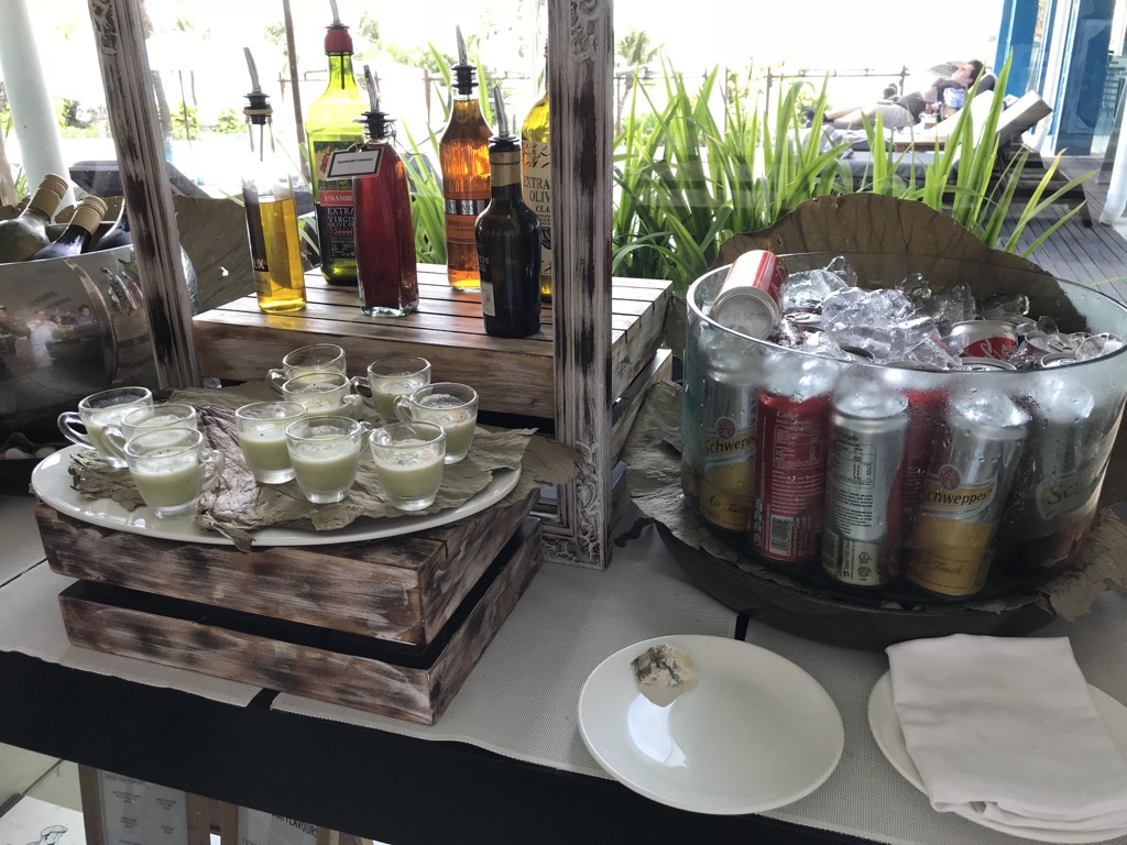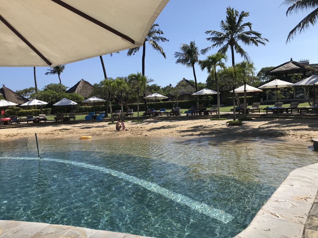 Das Hilton Bali verfügte neben dem Loungepool noch über mehrere andere Pools, inkl. einer Wasserrutsche, Basketballkörben und Wasserballtoren. Wir waren auch unten an den anderen Pools, allerdings waren sie uns zu voll. Auch unsere Liegen am Strand wurden, als wir mal zehn Minuten im Meer waren, trotz privater Gegenstände von netten asiatischen Gästen des Hotels geräumt und für sich beschlagnahmt. Eine Entschuldigung gab es nicht.